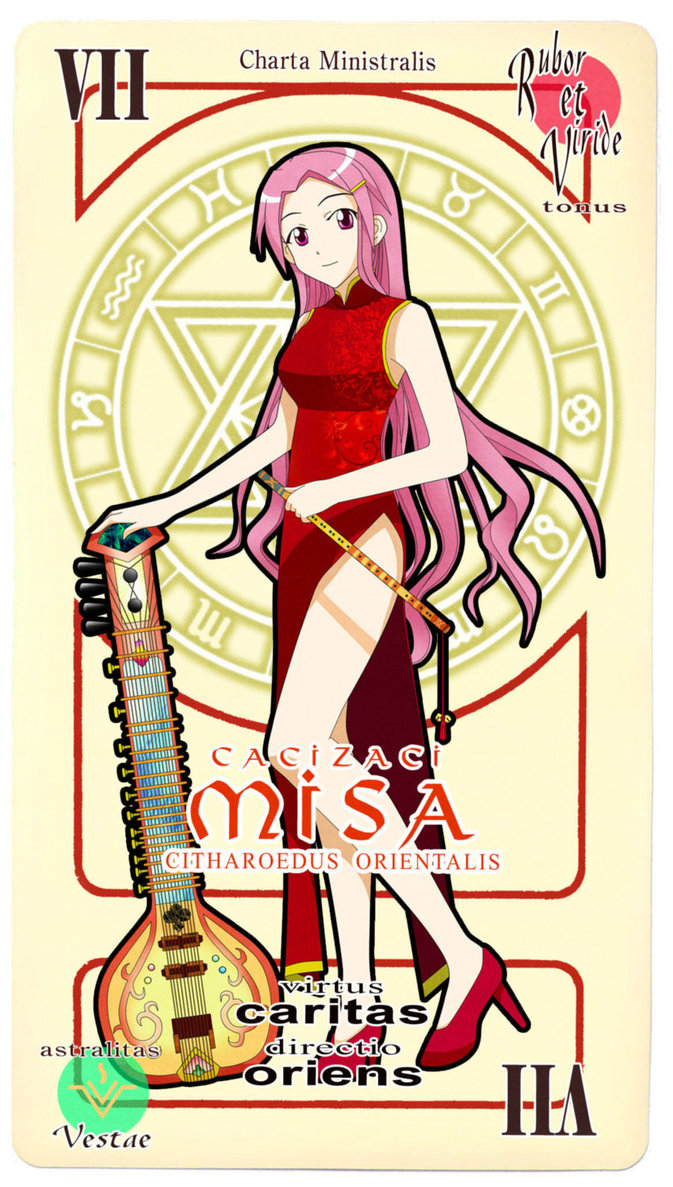 Description: A woman in a red dress holding a guitar and a pentagramil on a white background with a pentagramil in the background.