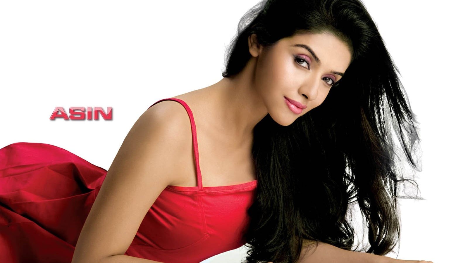 Description: A woman in a red dress posing for a picture with her hair blowing in the wind and her hand on her hip.