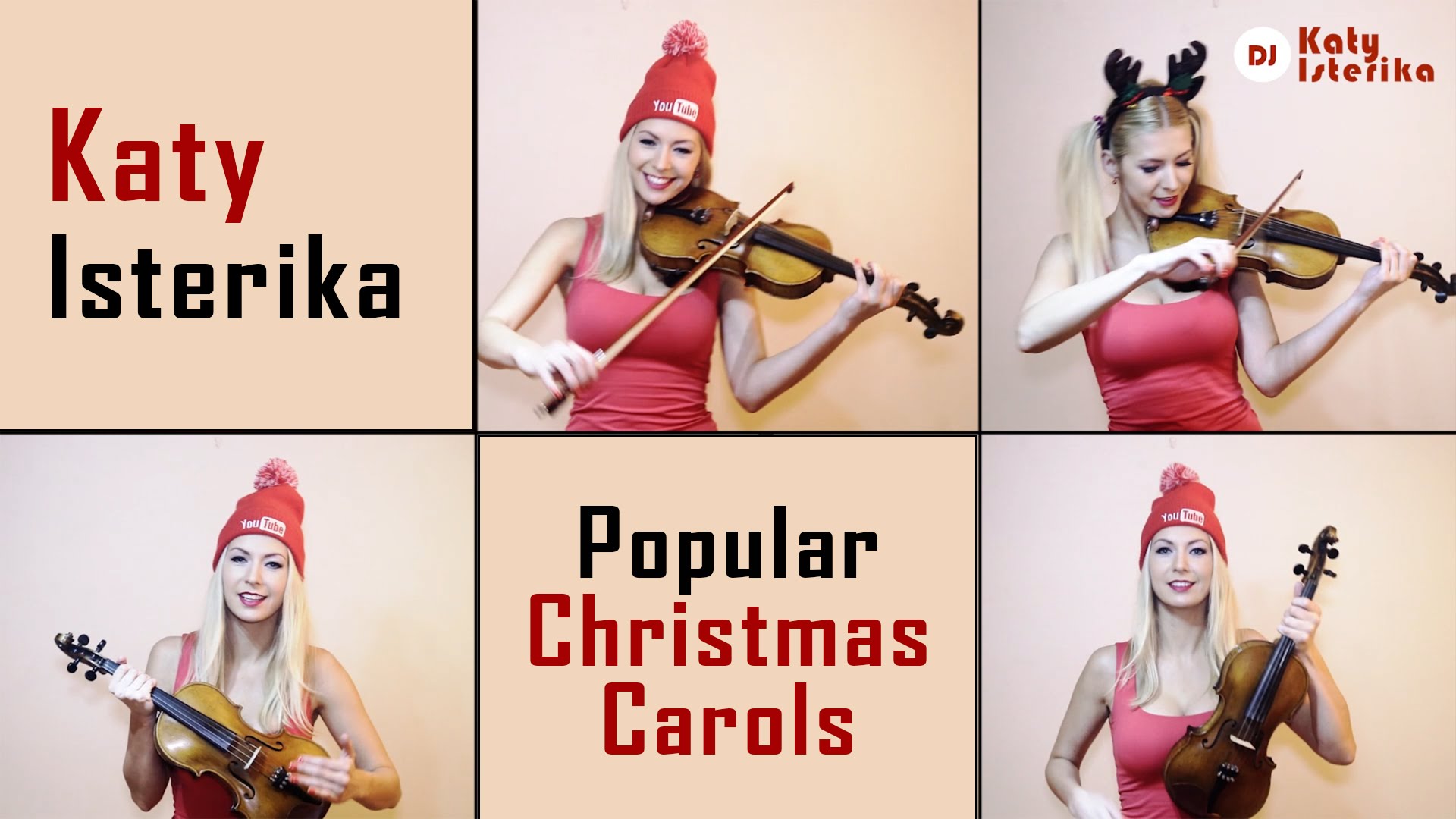 Description: A woman in a red hat playing a violin and singing into a microphone with the words.
