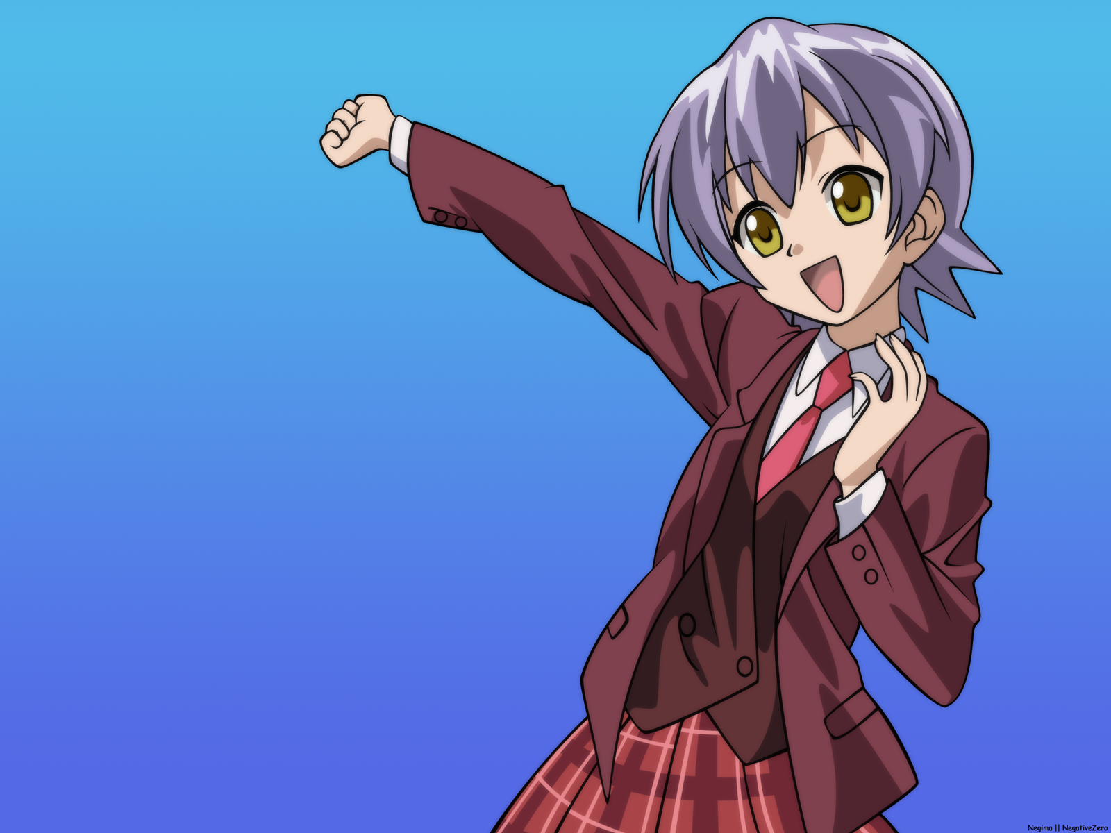 Description: A woman in a red jacket and a red and white dress is pointing her finger at something in the air.