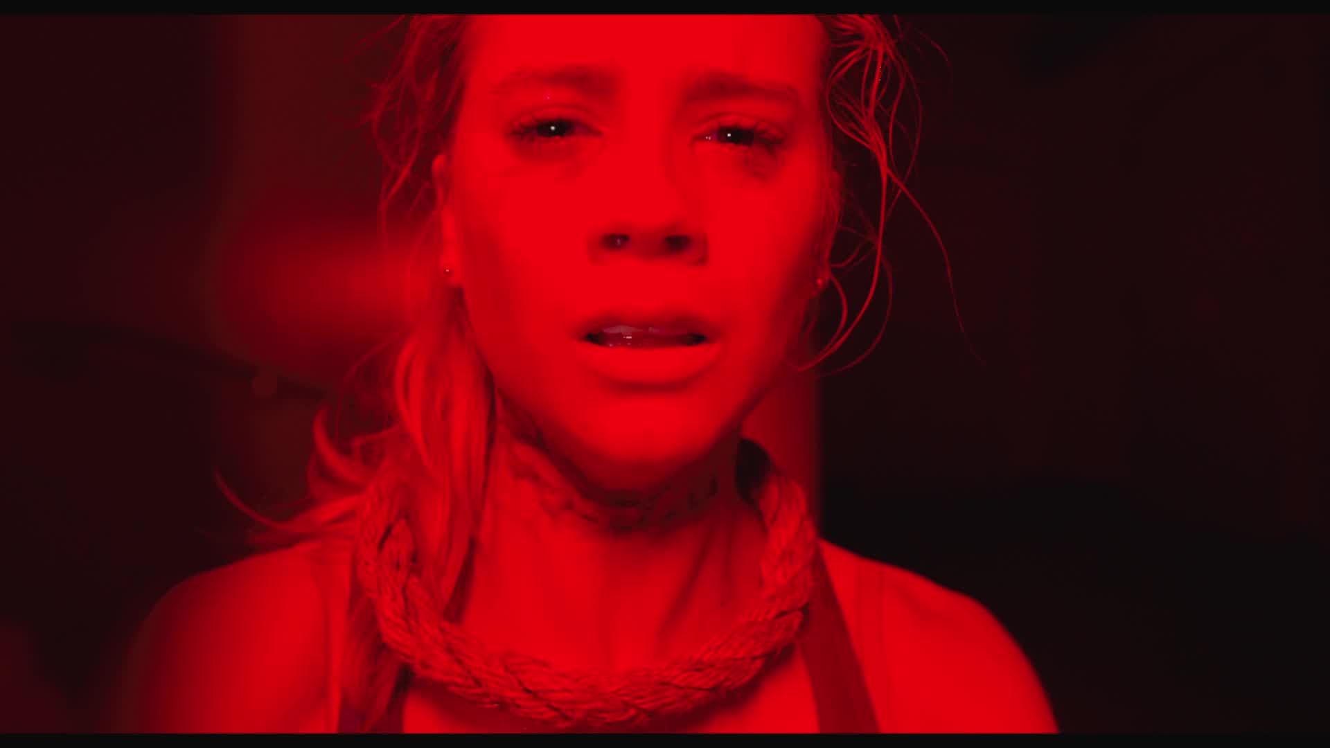 Description: A woman with a red light on her face and a red background behind her is a red light in the dark.