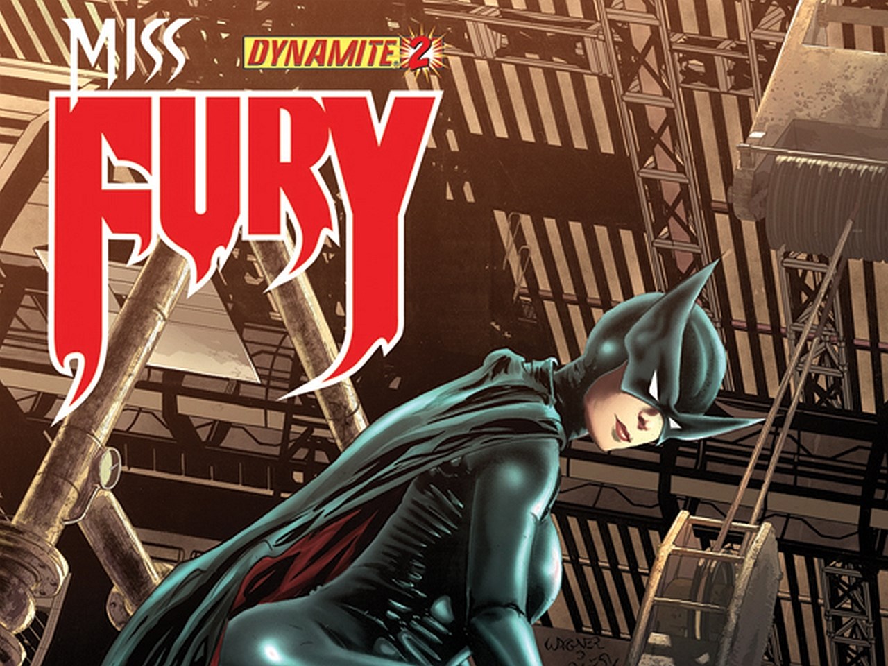 Description: A cover of a comic book with a woman in a black suit and red cape on her head and a man in a black suit on his knees.