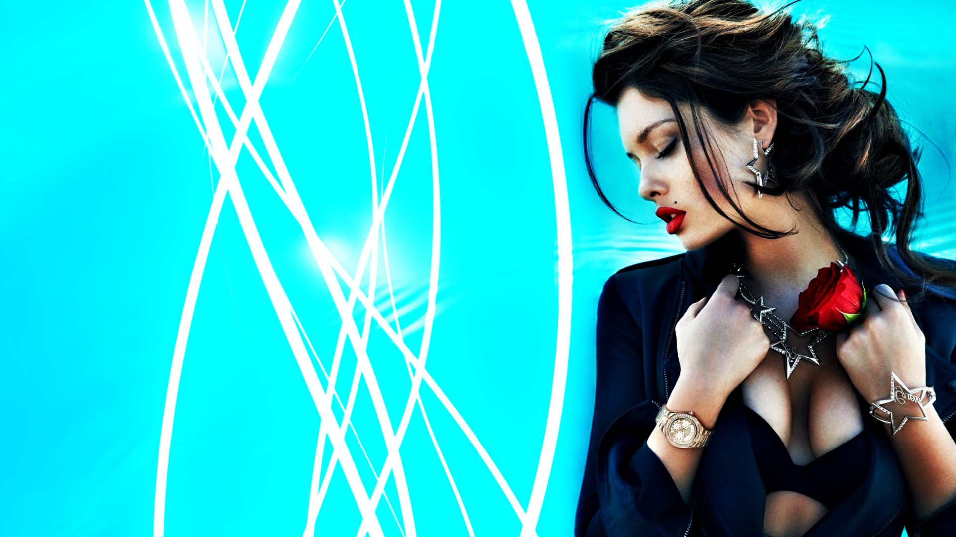 Description: A woman with a rose in her hand and a star necklace on her neck.
