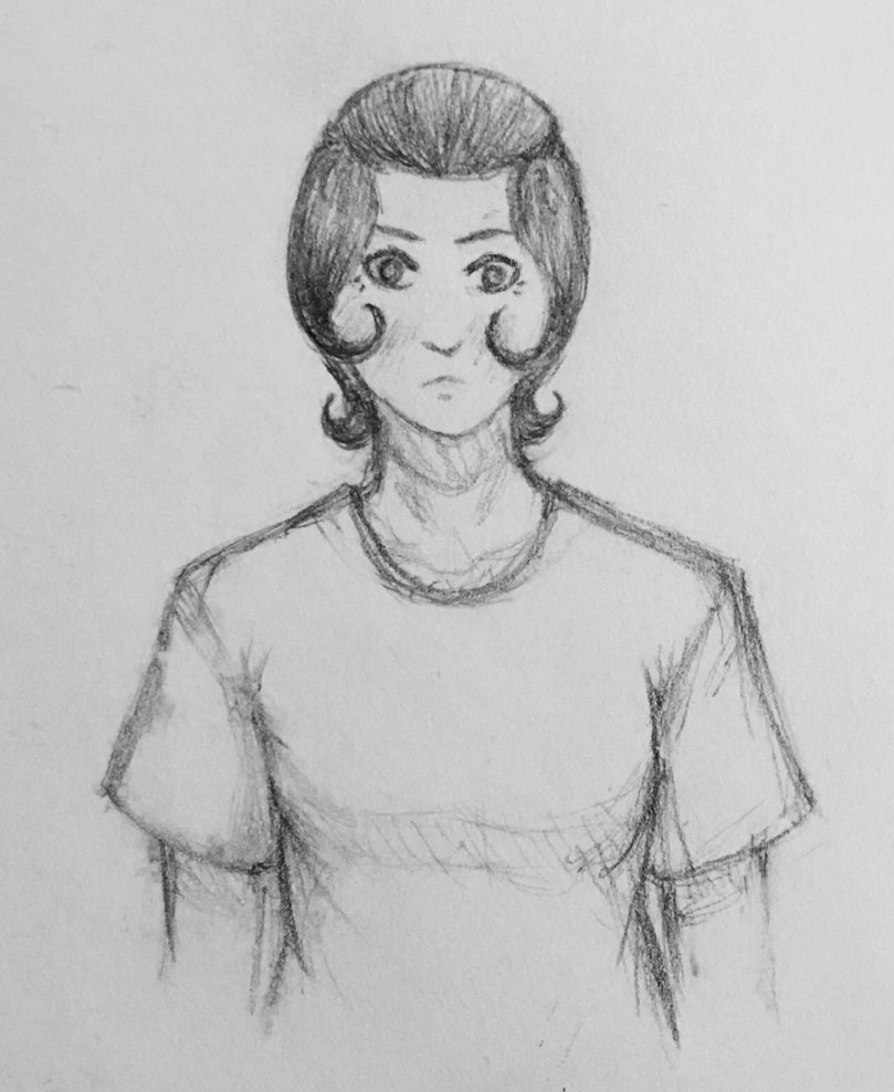 Description: A drawing of a woman with a short haircut and big eyes.