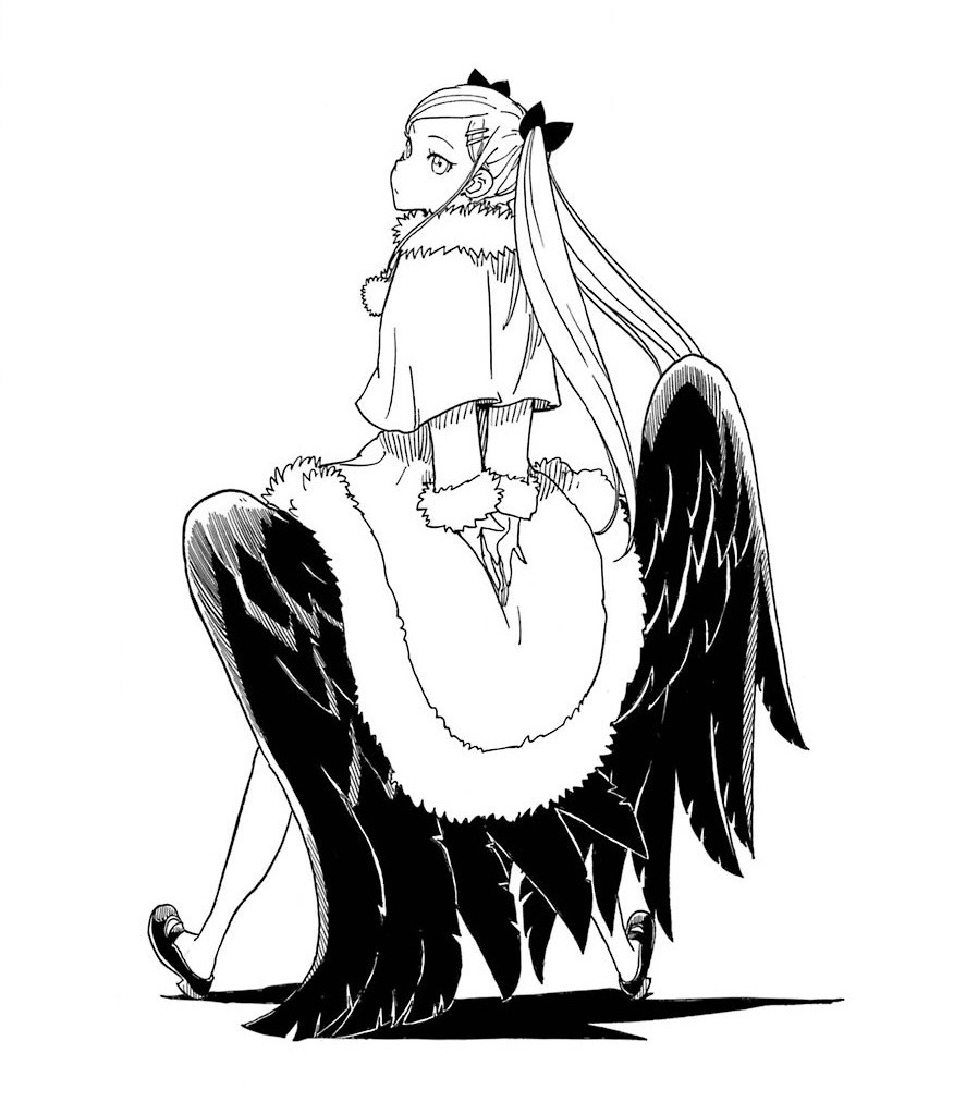 Description: A drawing of a woman sitting on a bird with long hair and a crown on her head.
