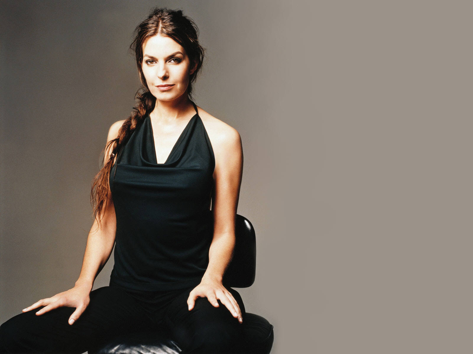 Description: A woman sitting on a chair with her hands in her pockets and a backpack on her back.