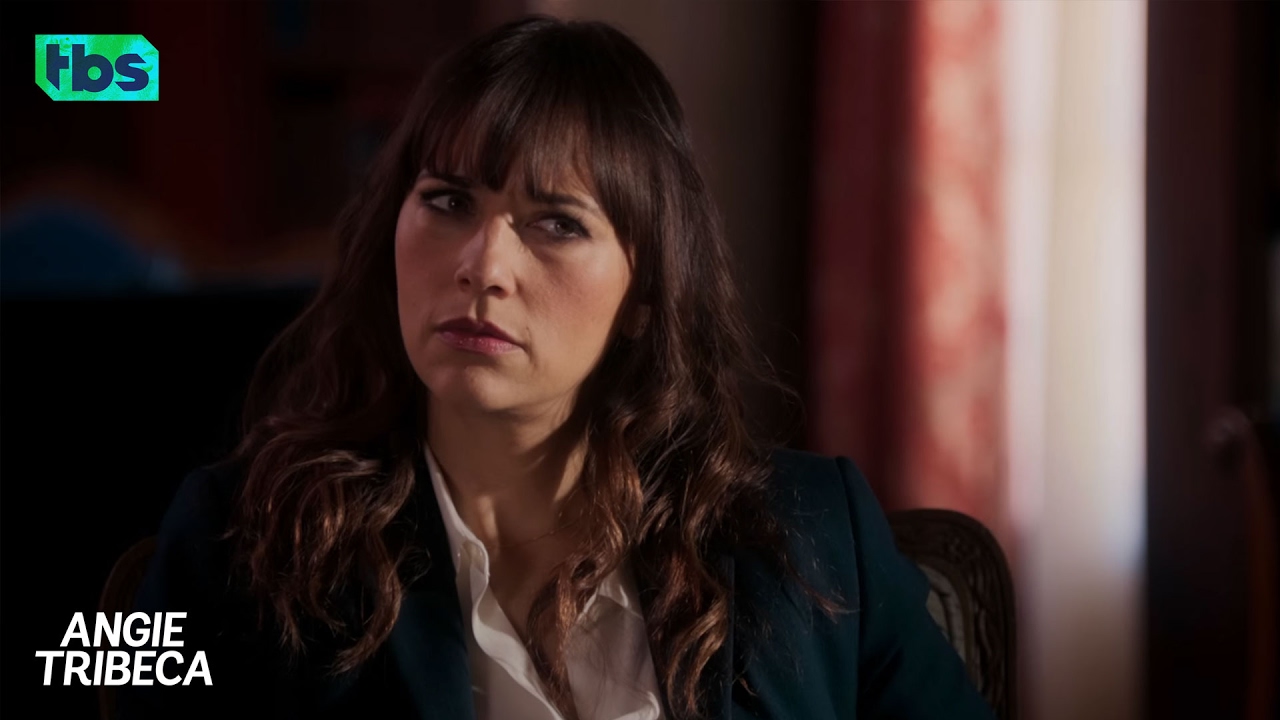 Description: A woman sitting in a chair looking at the camera with a serious look on her face and shoulder.