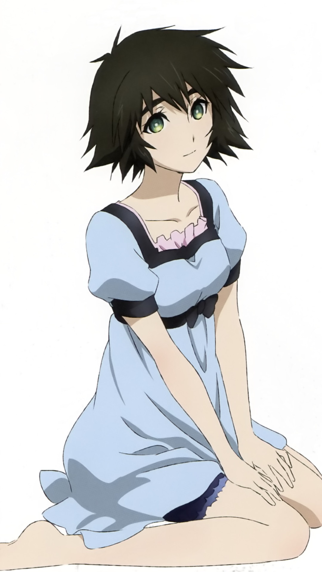 Description: A woman sitting on the ground with her legs crossed and her hand on her hips.