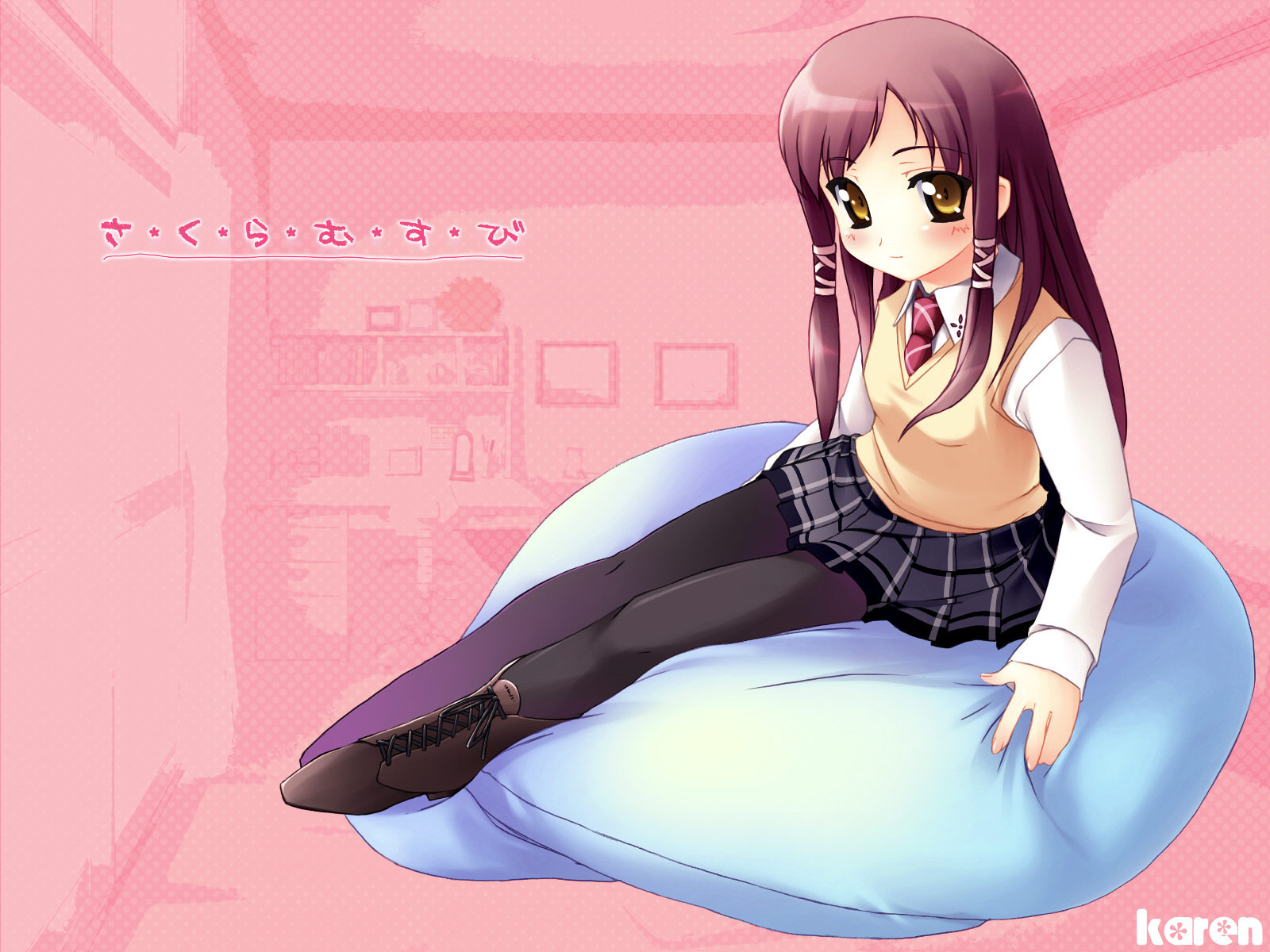 Description: A woman sitting on a pillow with a pink background and a pink background with a pink background and a pink background with a pink background and white background with a pink background.
