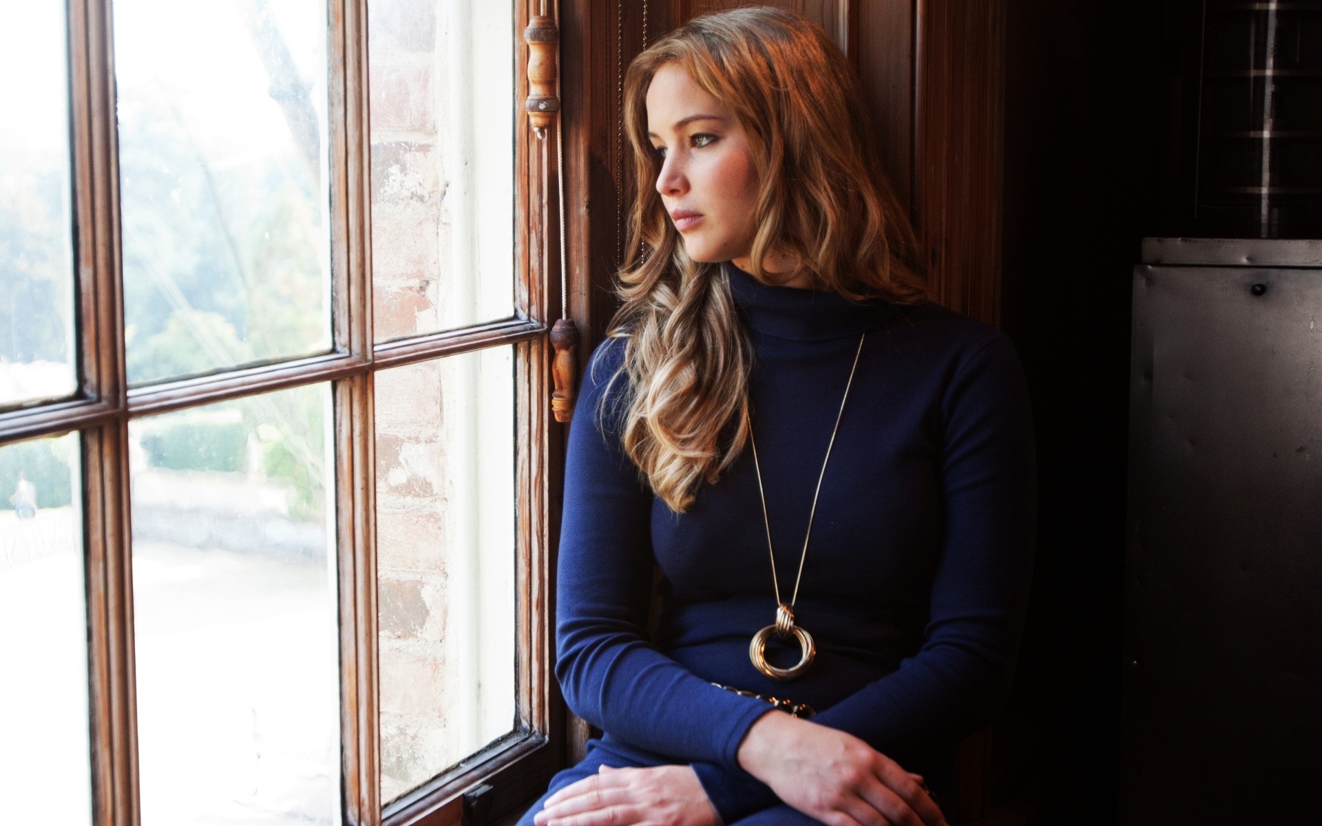 Description: A woman sitting in a window sill looking out the window at the street outside of the window.