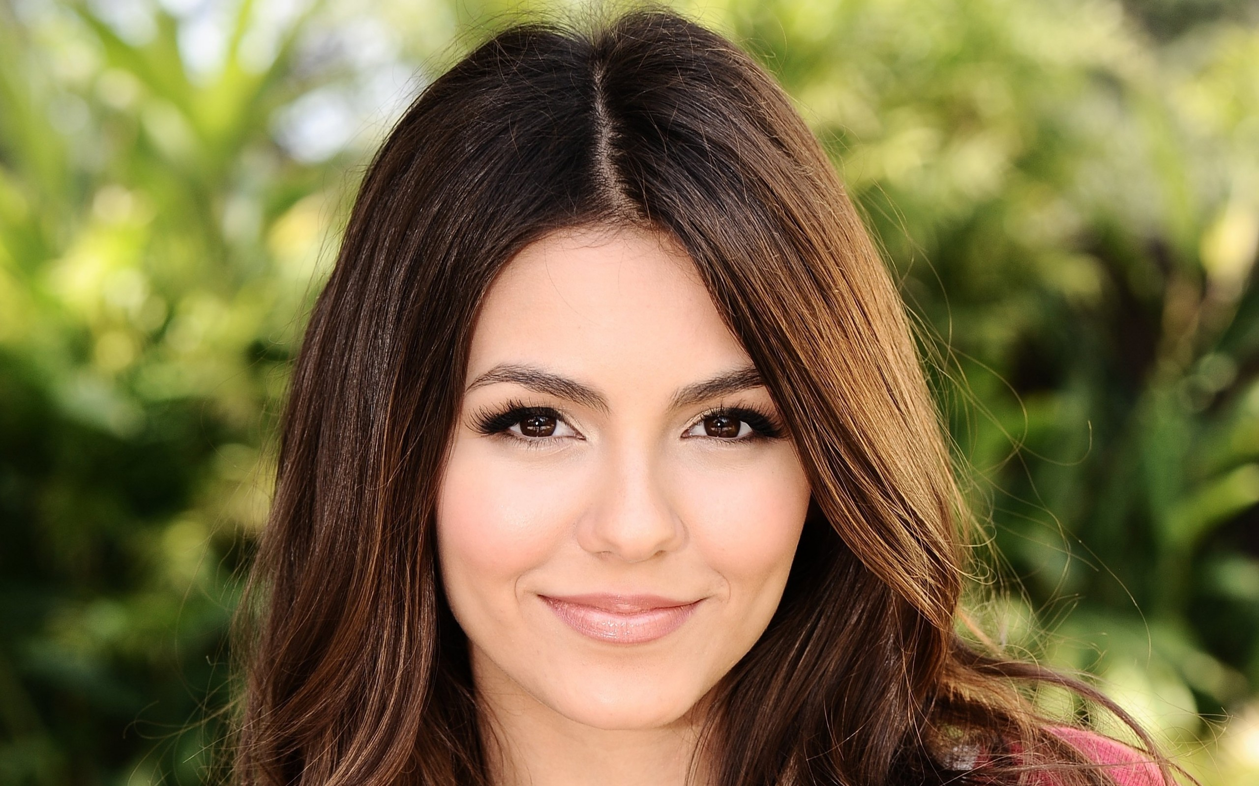 Description: A woman with long hair and a pink shirt smiling at the camera with a green background and trees in the background.