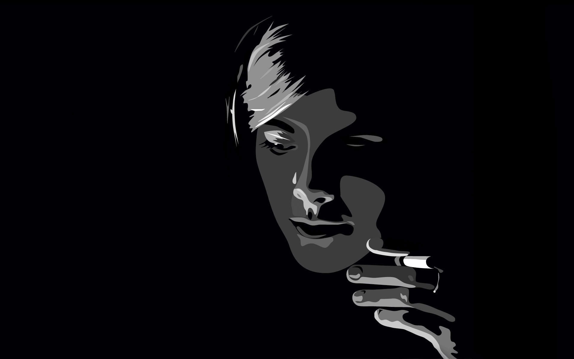 Description: A woman smoking a cigarette in the dark with a cigarette in her mouth and a cigarette in her mouth.