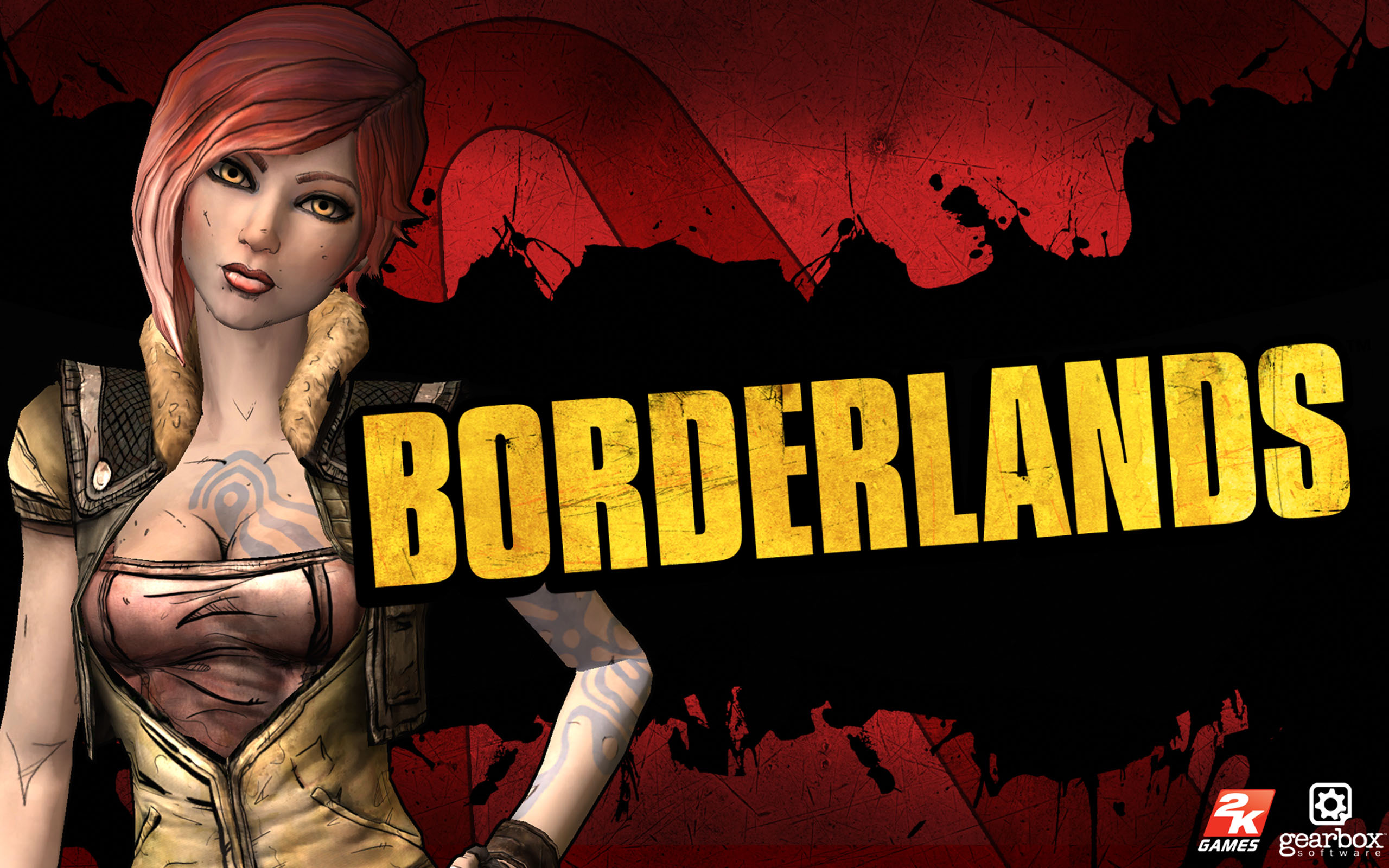 Description: A woman with a snake in her hand and a borderlands banner in the background with a red and black background.