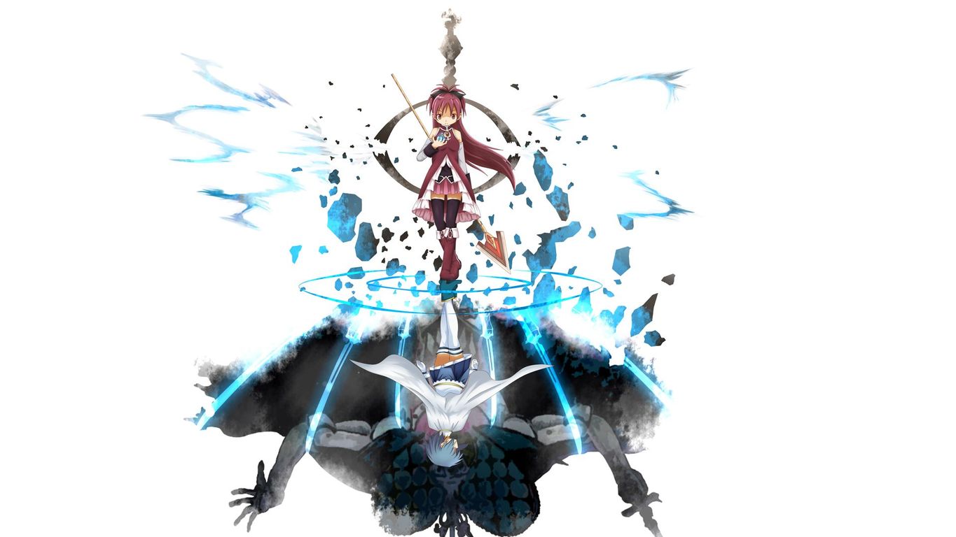 Description: A woman standing on top of a bat with a sword in her hand and a demon on her back.