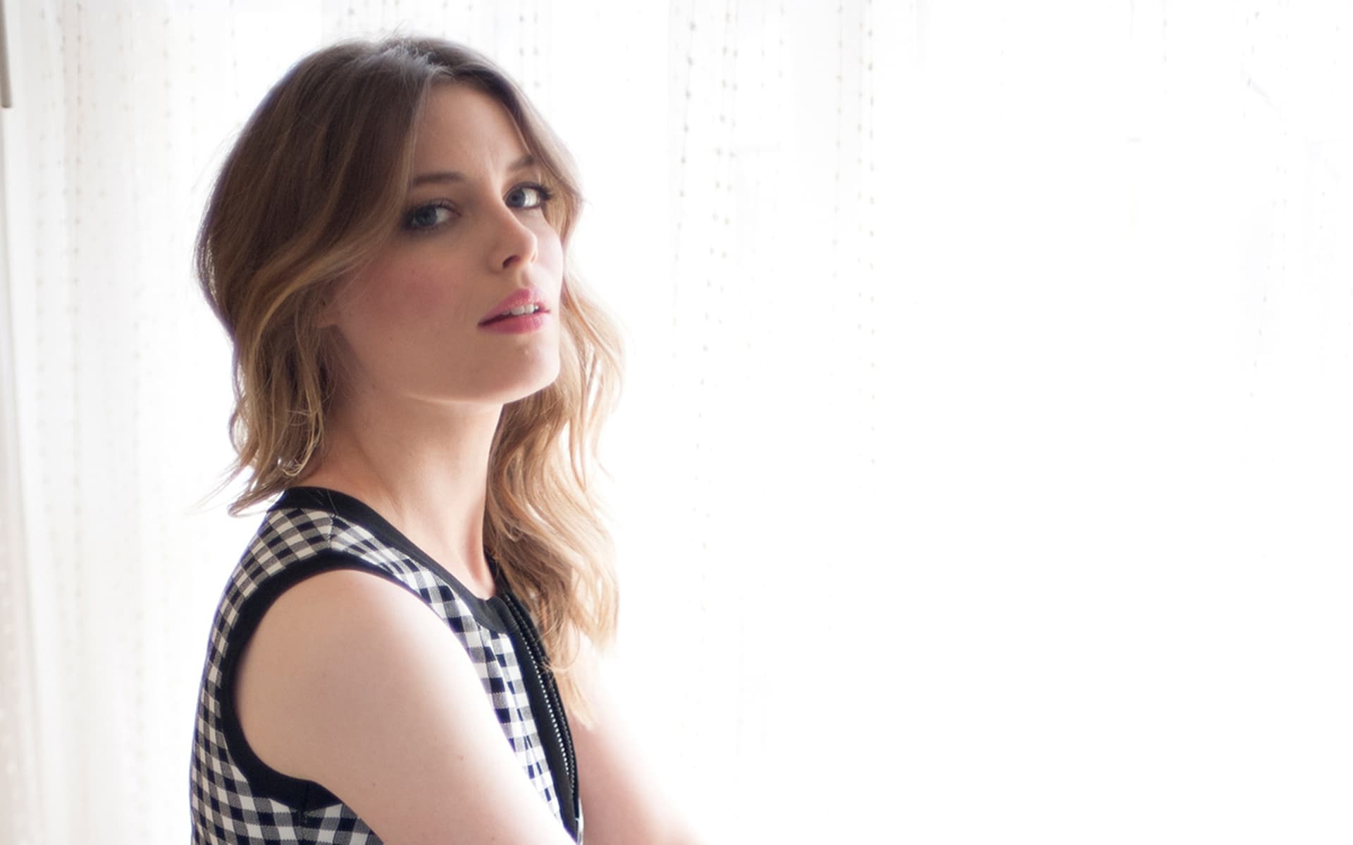 Description: A woman standing in front of a window with her arms crossed and looking off to the side with a serious look on her face.
