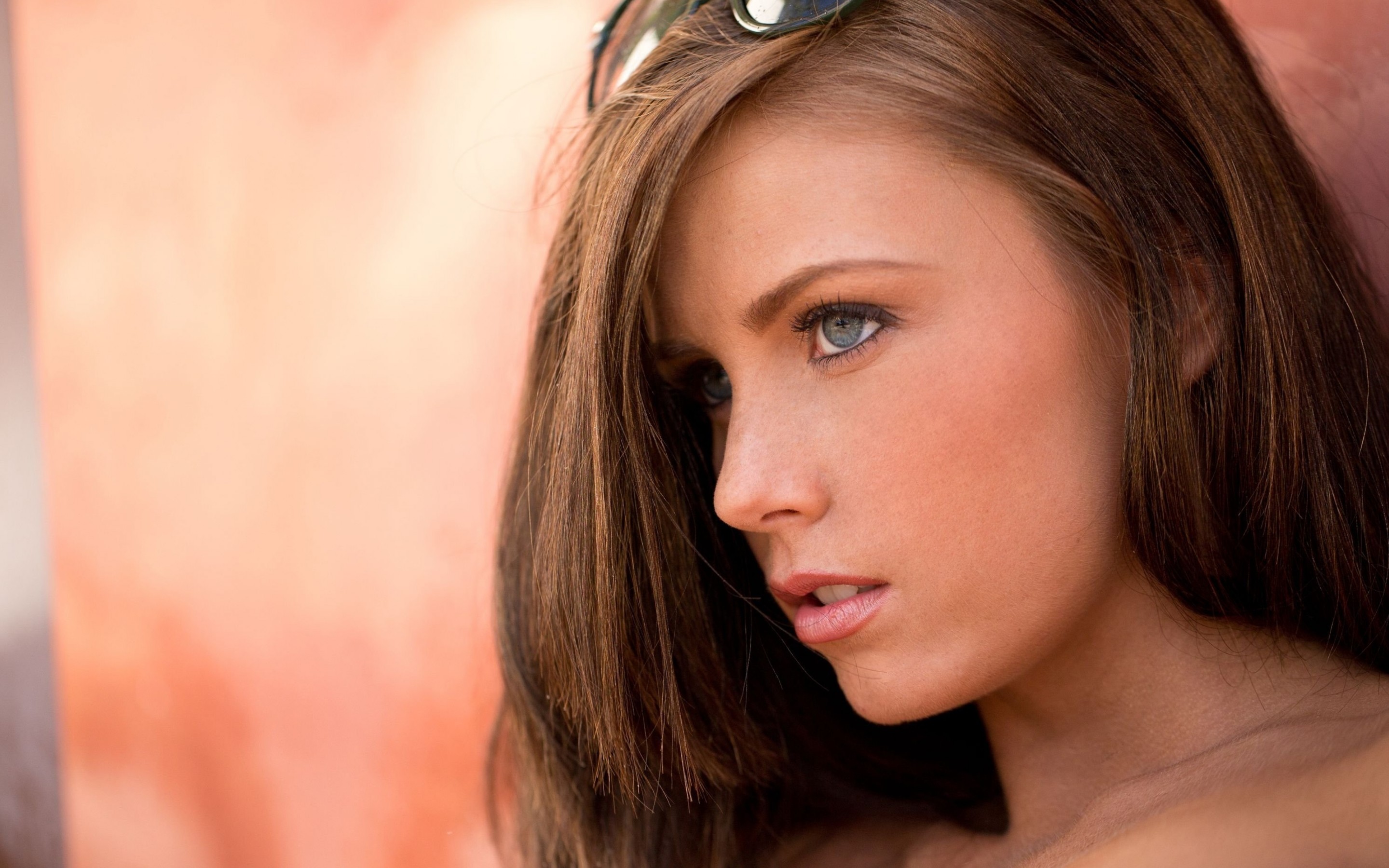 Description: A woman with a pair of sunglasses on her head and a hair comb in her hair.