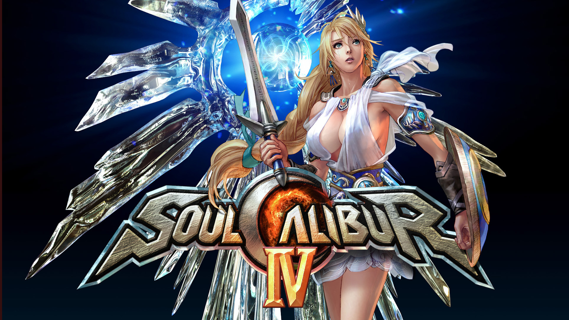 Description: A woman holding a sword and a sword in front of a blue background with the words soul of calibr iv.