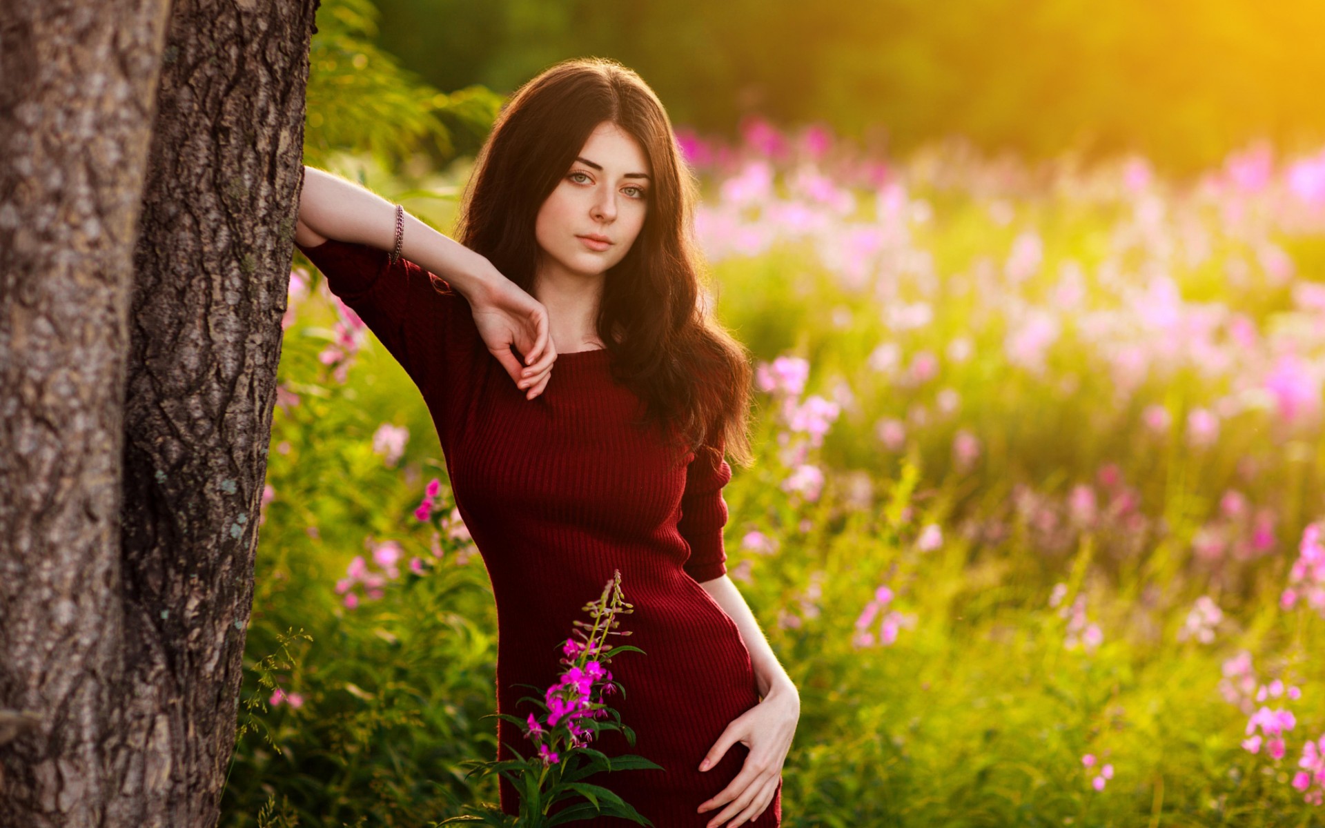 Woman tree field flower sun - free wallpaper for desktop | 5desktop.com