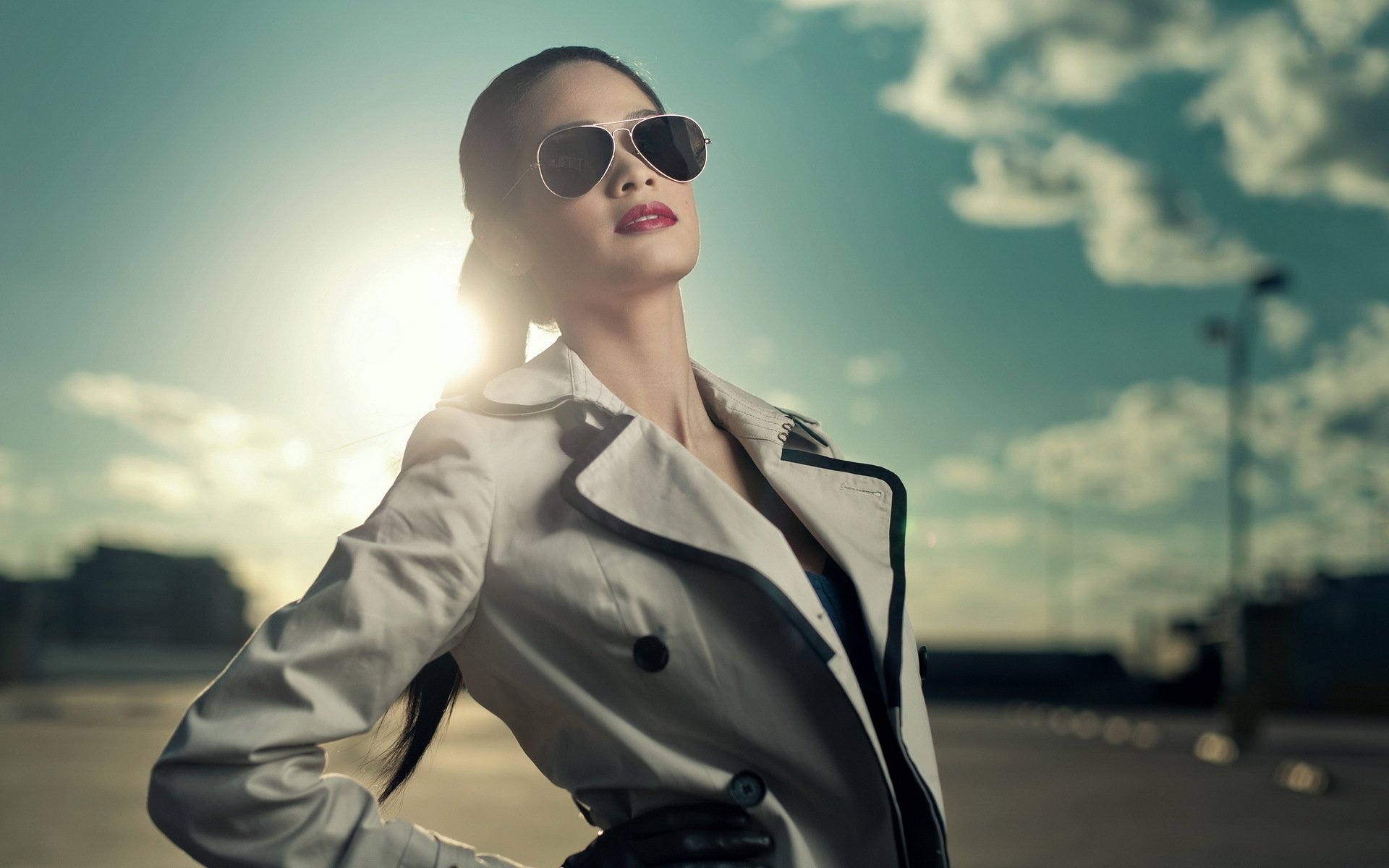 Woman trench coat sunglasses sunset - free wallpaper for desktop | 5desktop.com