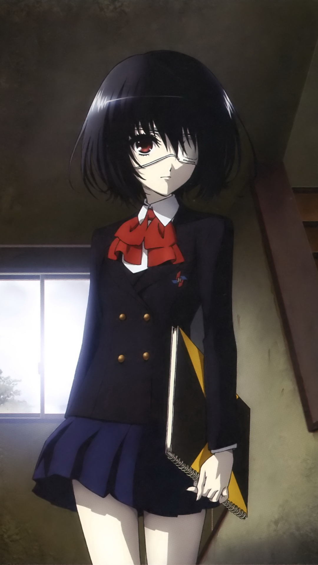 Description: A woman in a uniform holding a folder and a folder bag in her hand.