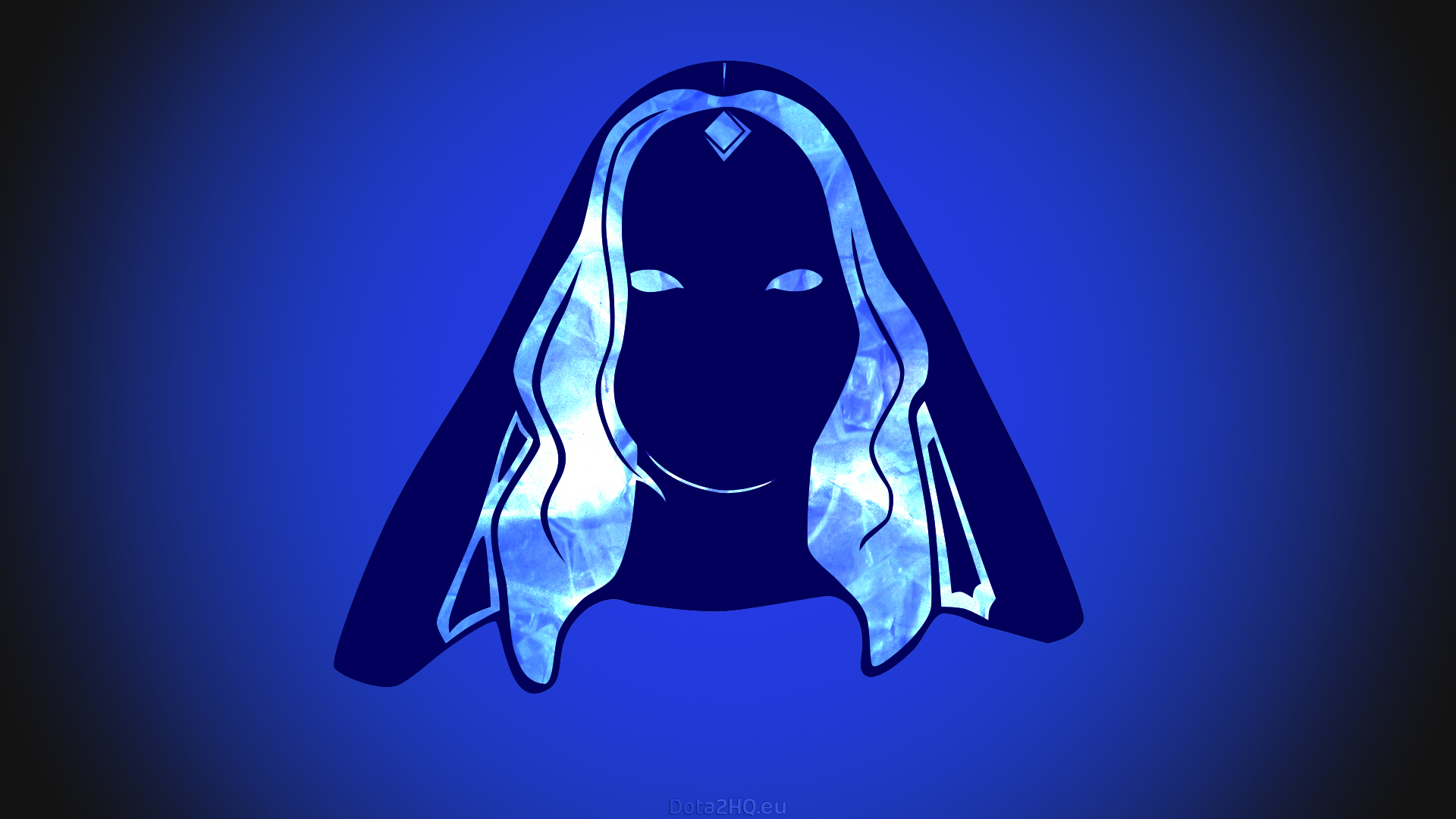 Description: A woman with a veil on her head and a blue background with a black background and a blue background with a white outline.