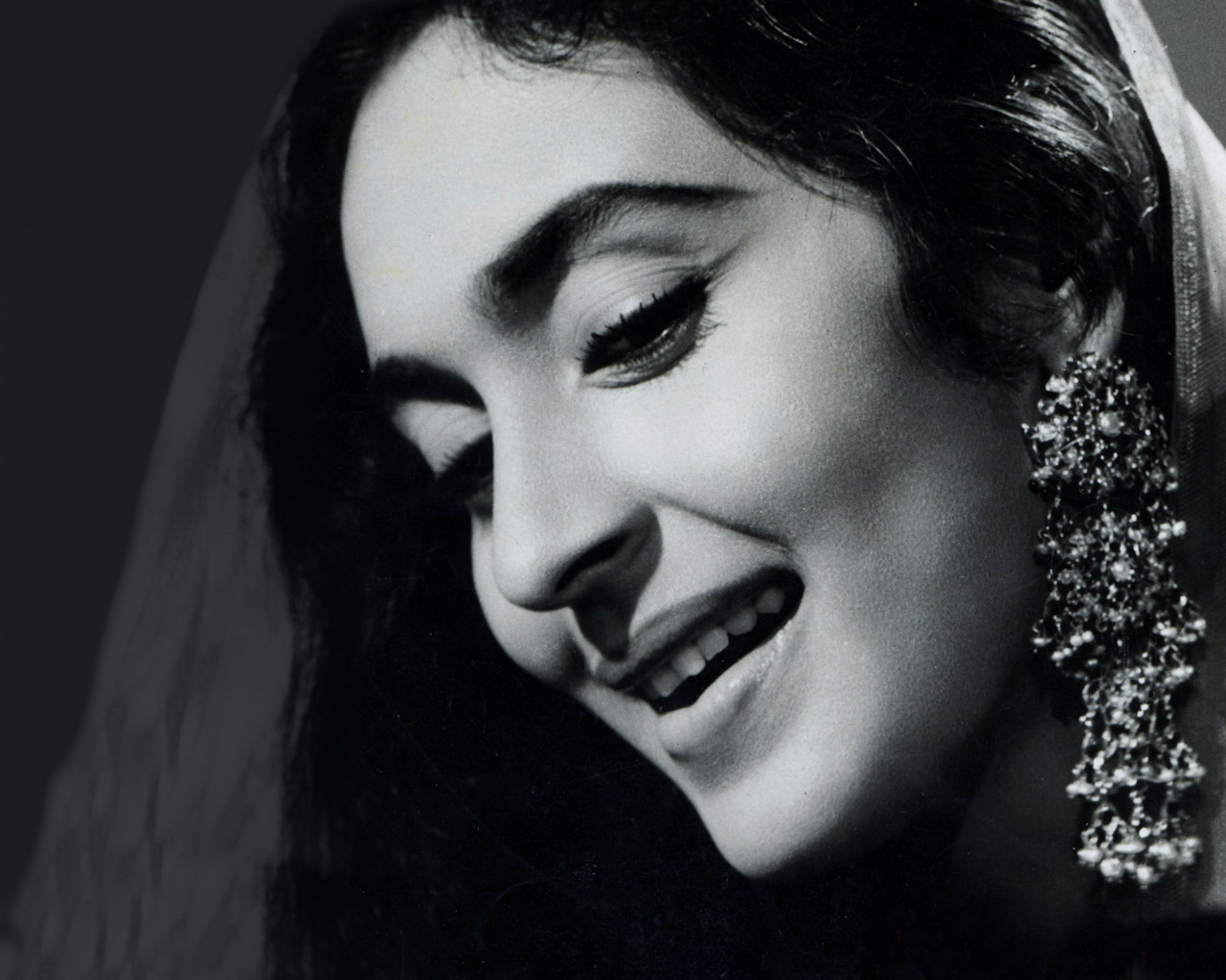 Description: A woman wearing a veil and earrings smiles at the camera while wearing a veil and earrings on her head.