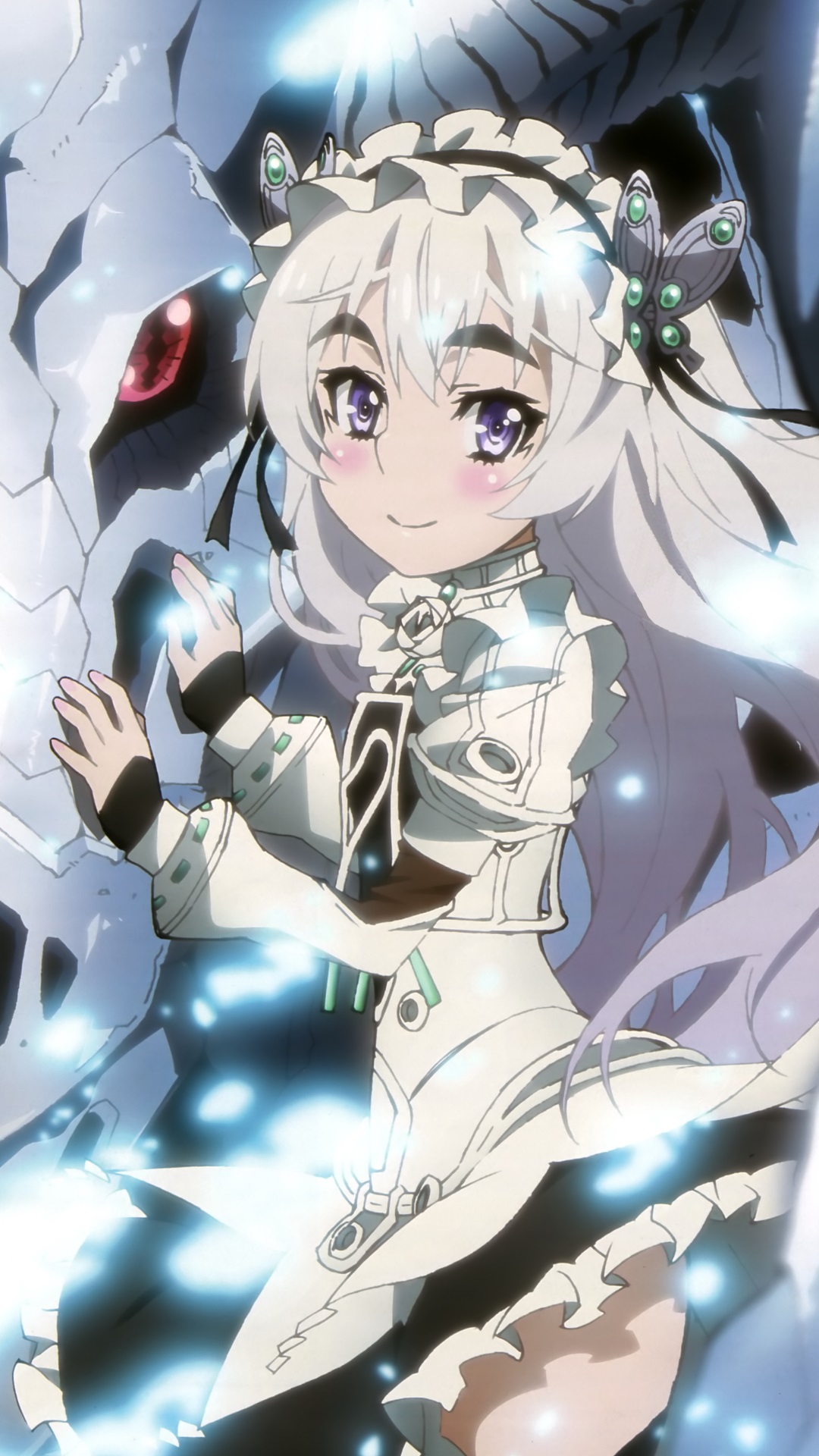 Description: A woman in a white dress standing next to a dragon and a white dragon with blue eyes and a white tail.
