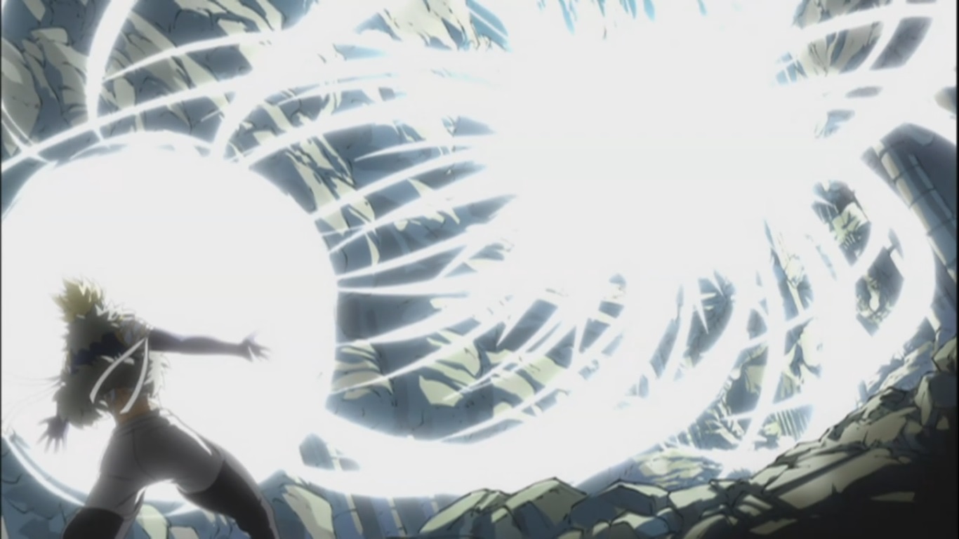 Description: A woman in a white outfit is standing in front of a large white object with a light coming out of it.