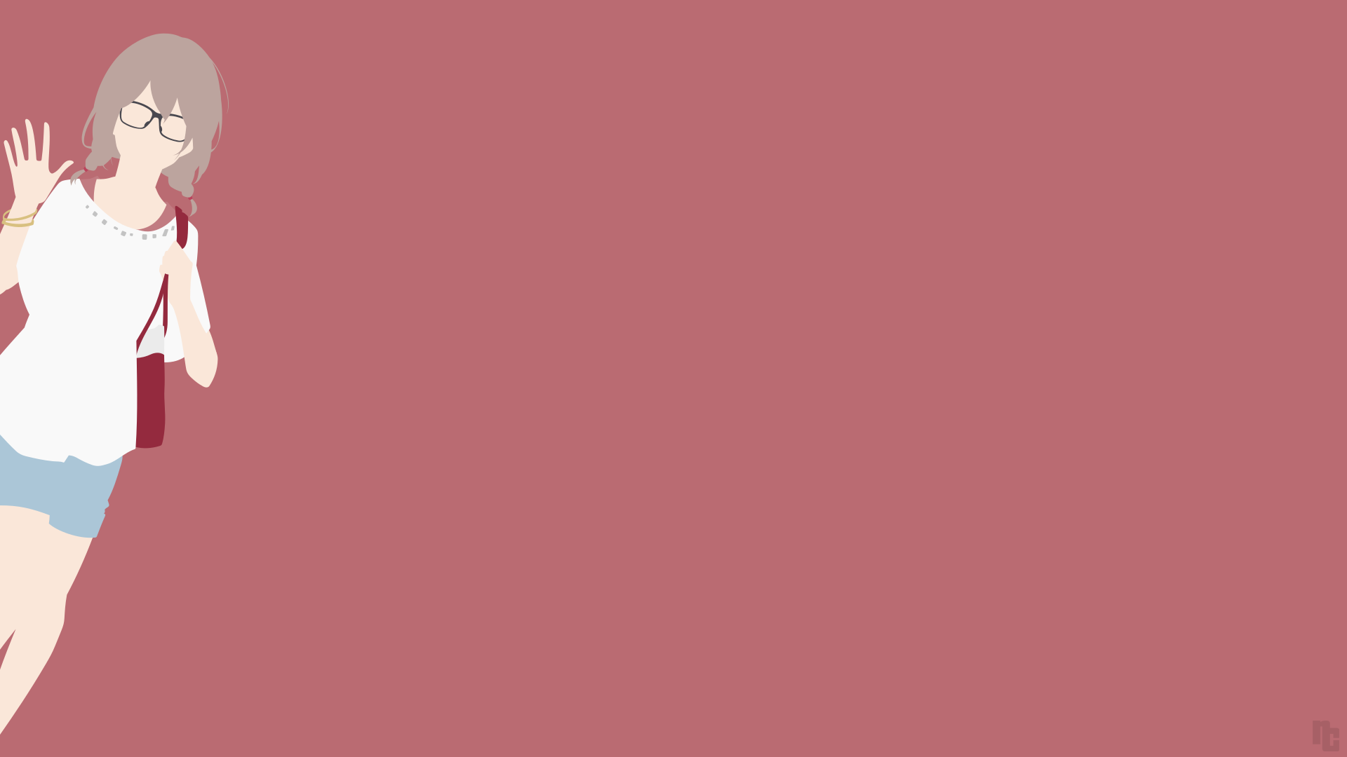 Description: A woman in a white shirt and blue skirt is standing in front of a pink wall with her hand up.