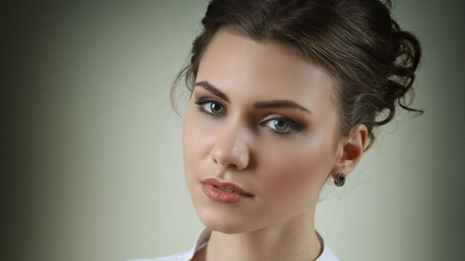 Description: A woman with a white shirt and a necklace on her neck and a white shirt on her shoulder and a white shirt on her shoulder.