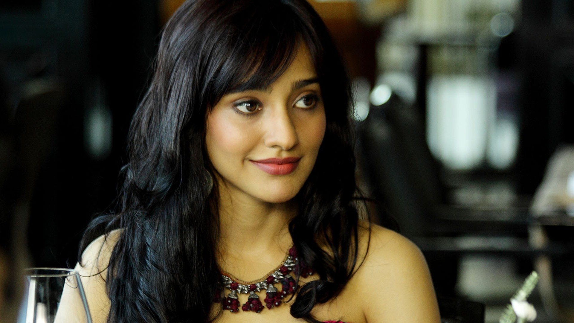Description: A woman with a glass of wine in her hand and a necklace on her neck.