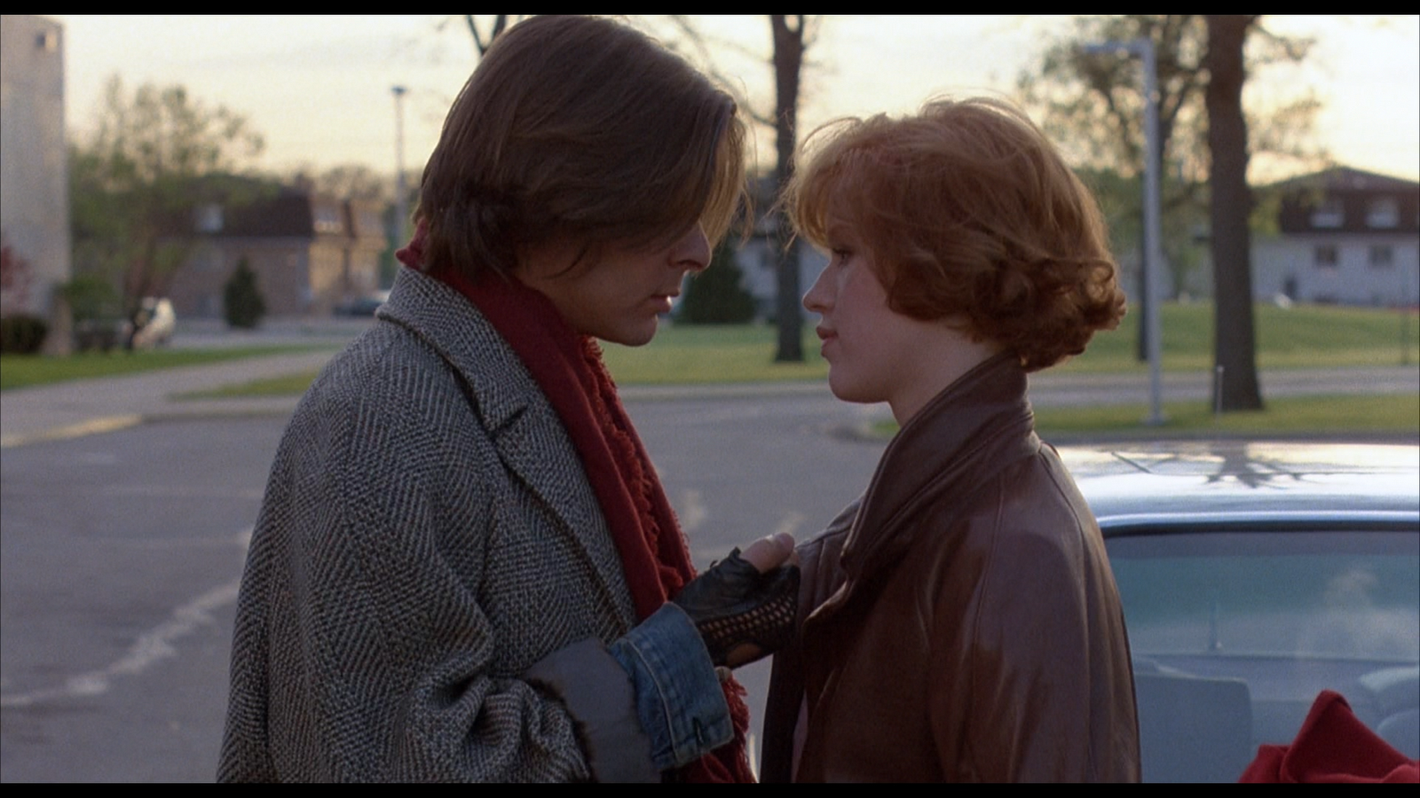 Description: Two women standing next to each other near a car on a street corner with a house in the background.