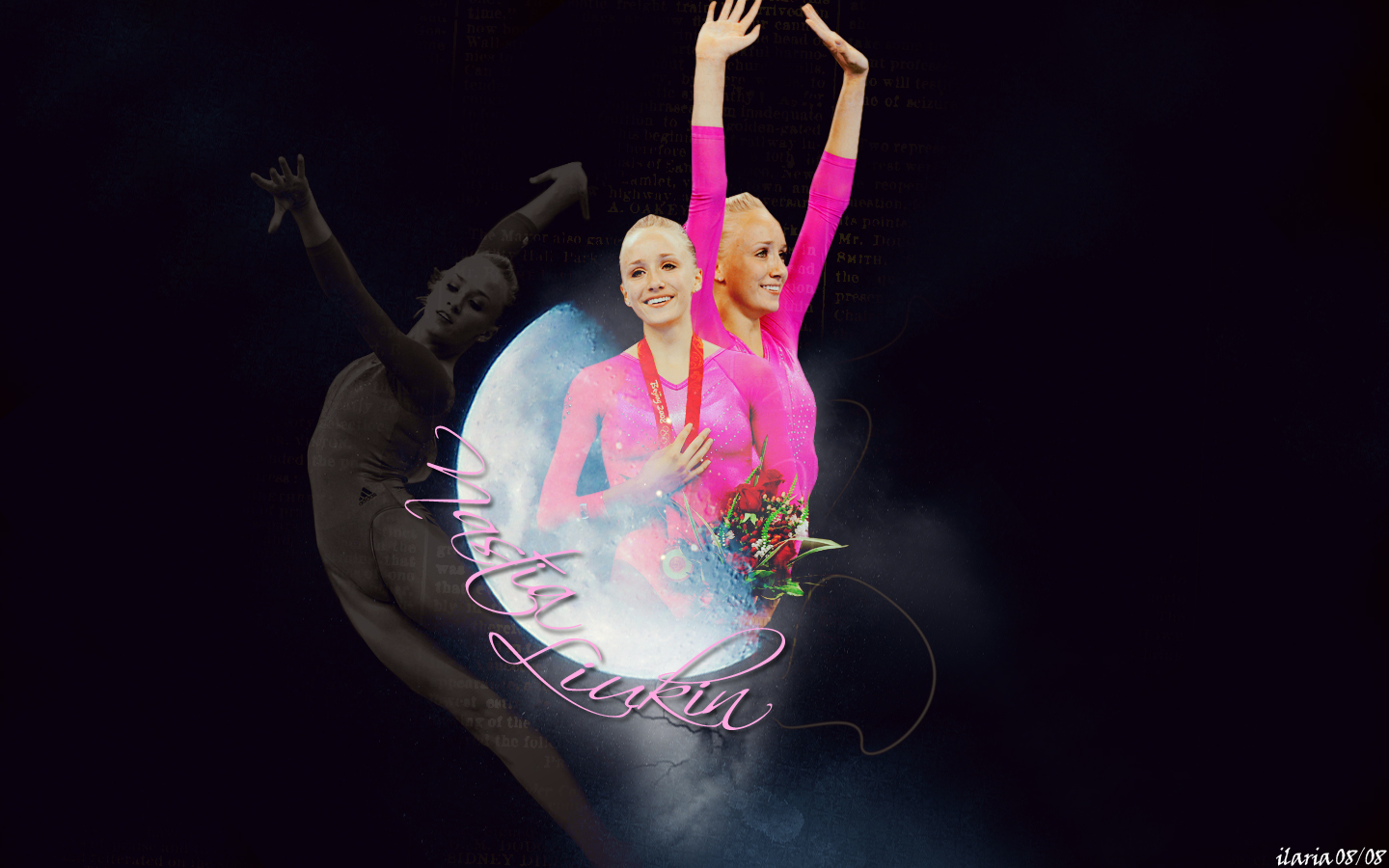 Description: Two women in pink and black are performing a dance routine on stage with a black background and a pink and white logo.