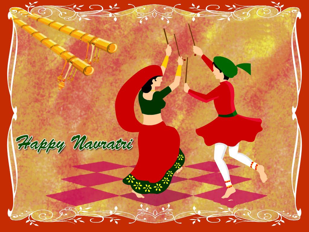 Description: A couple of women dancing on a dance floor with a banner in the background that says happy navrati.