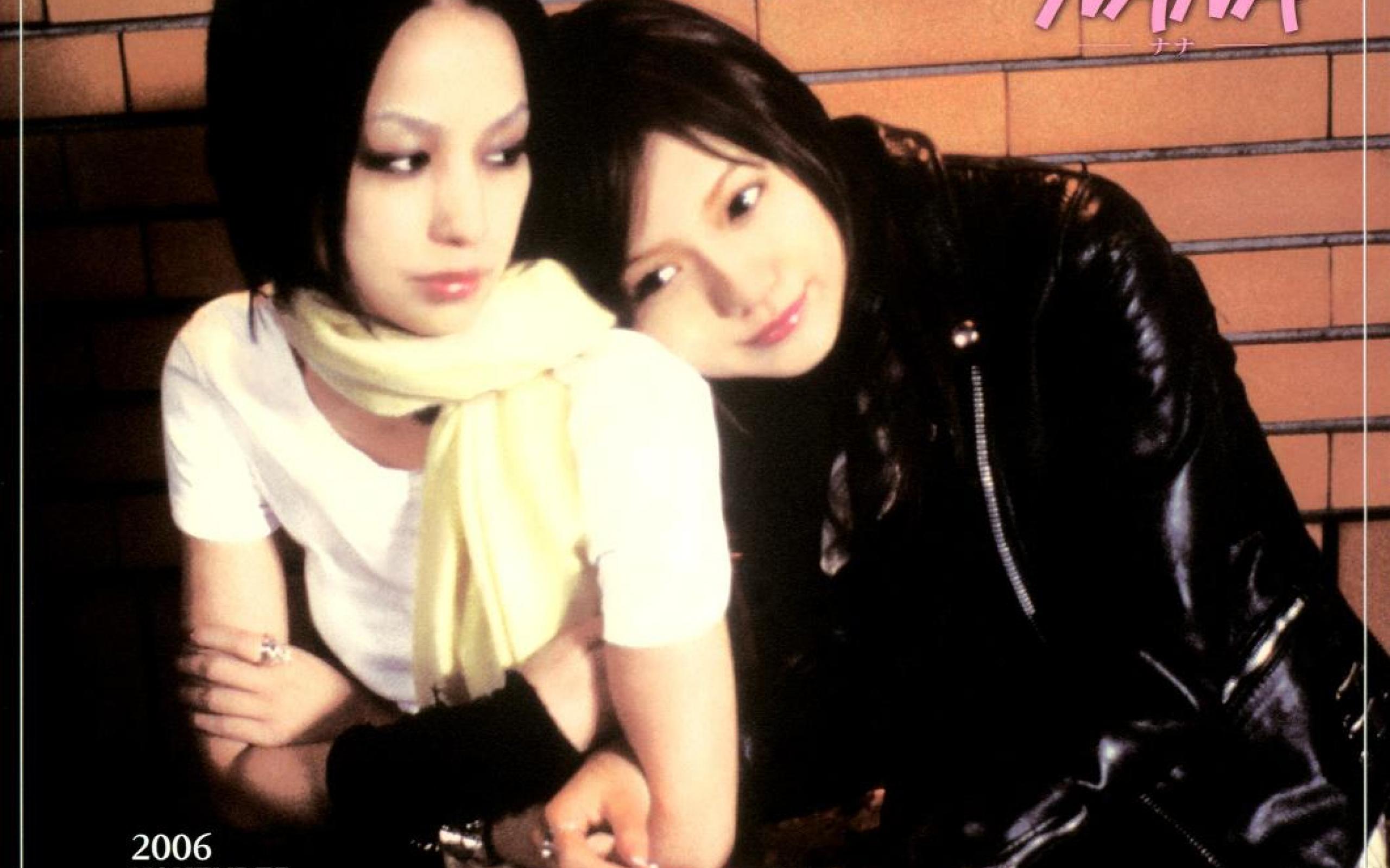 Description: Two women are posing for a picture together in front of a brick wall and a wall with graffiti on it.