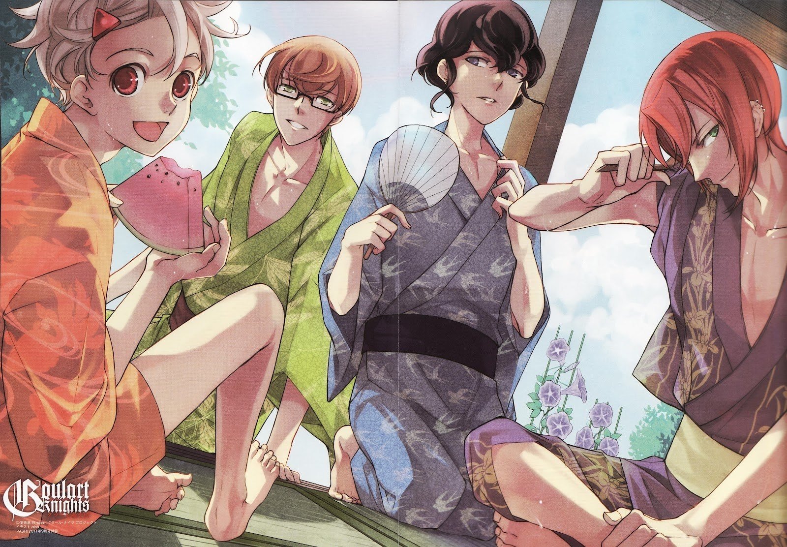 Description: A group of women sitting next to each other on a roof with a fan in their hand and a man in the other hand.