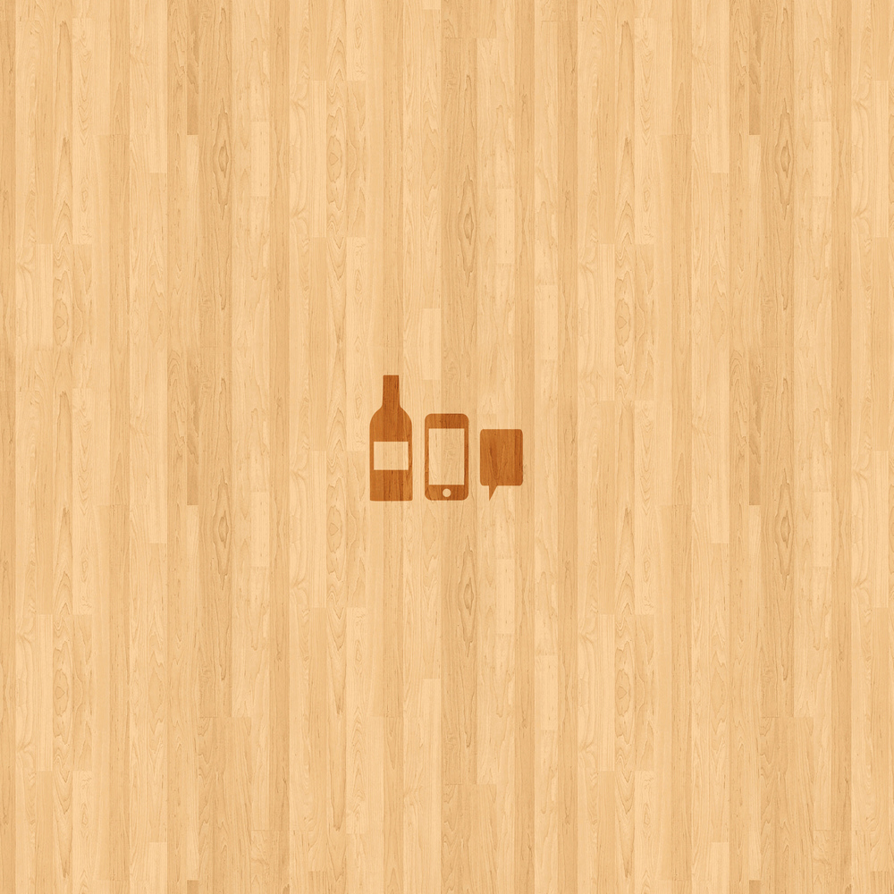 Description: A wooden floor with a bottle and a speaker on it and a speech bubble on the floor next to it.