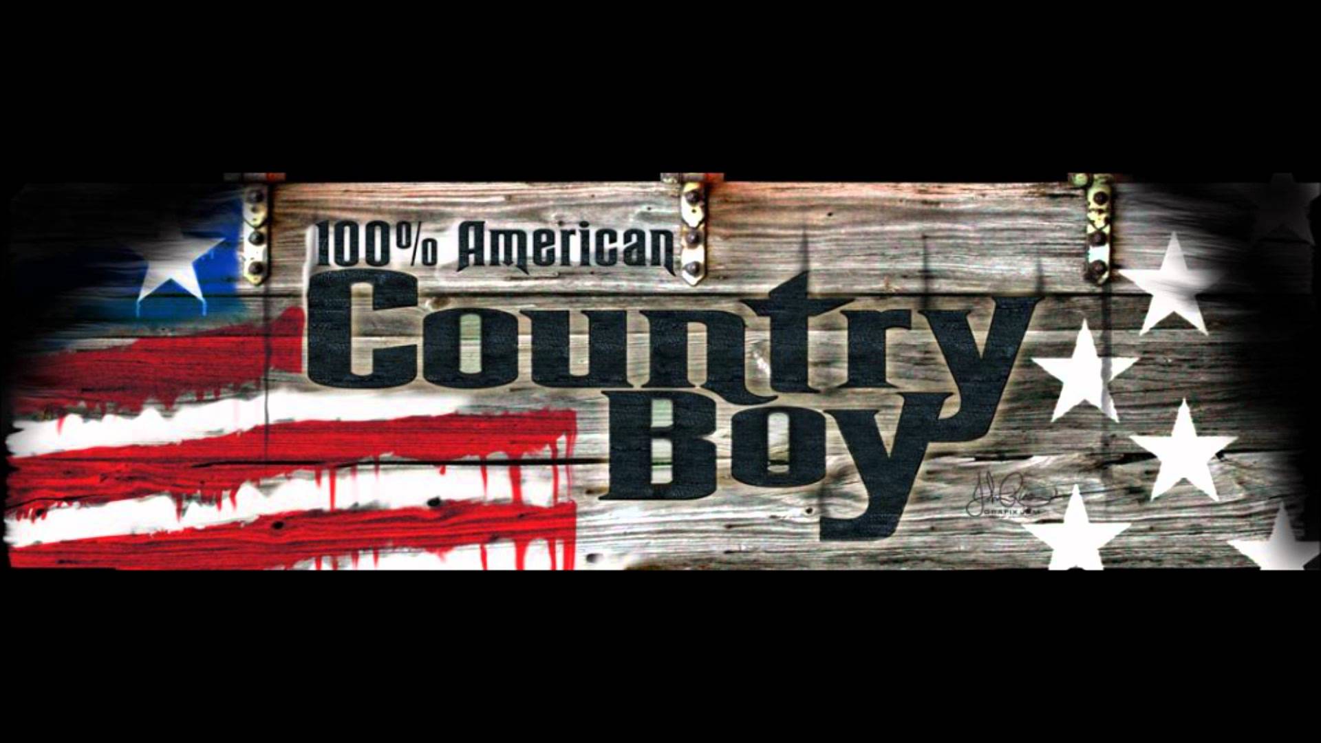 Description: A wooden sign with the words country boy painted on it and an american flag painted on it with stars.