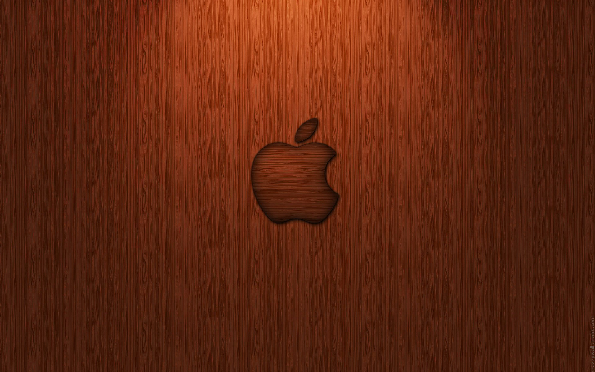Description: A wooden wall with an apple logo on it's side and a light on the side of it.