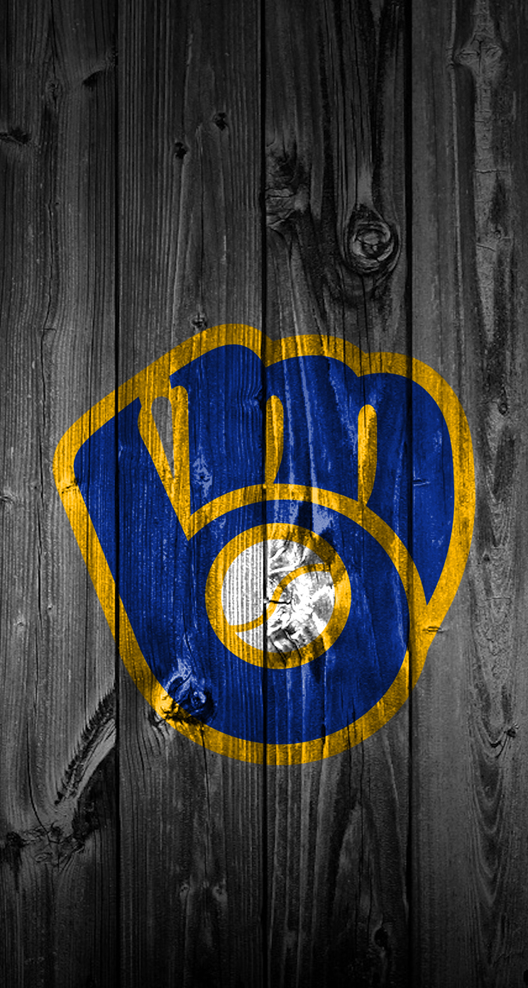 Description: A wooden wall with a blue and yellow logo on it and a white and yellow ball in the center.