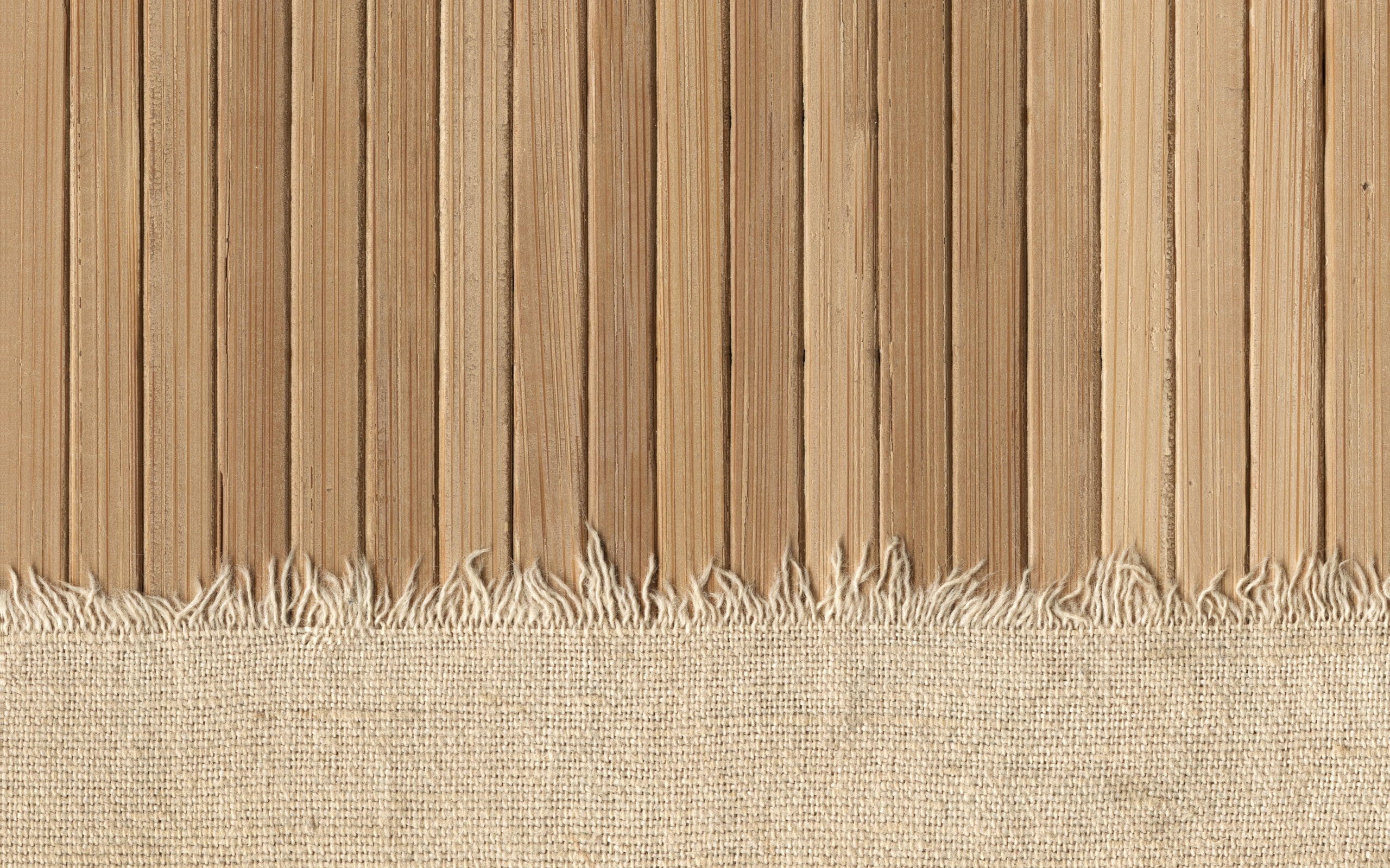 Description: A close up of a wooden wall with a white rug on it and a black and white cat laying on the floor.