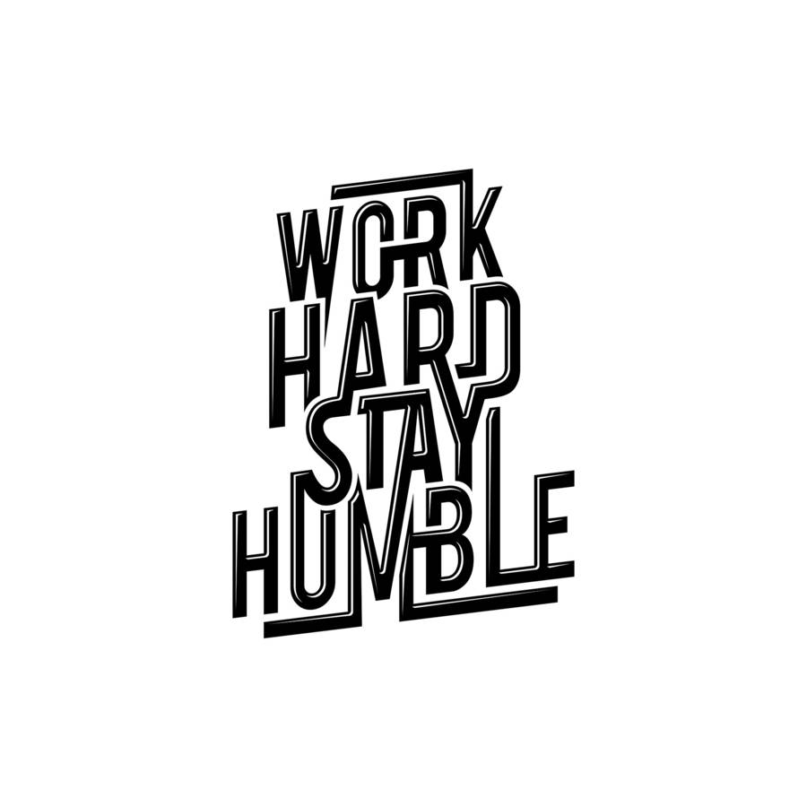 Description: A black and white photo of a work hard stay humble logo on a white background with the words work hard stay humble.