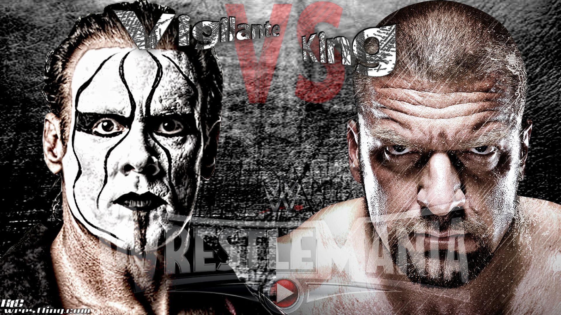Description: Two wrestlers with painted faces and one with a face painted on it.