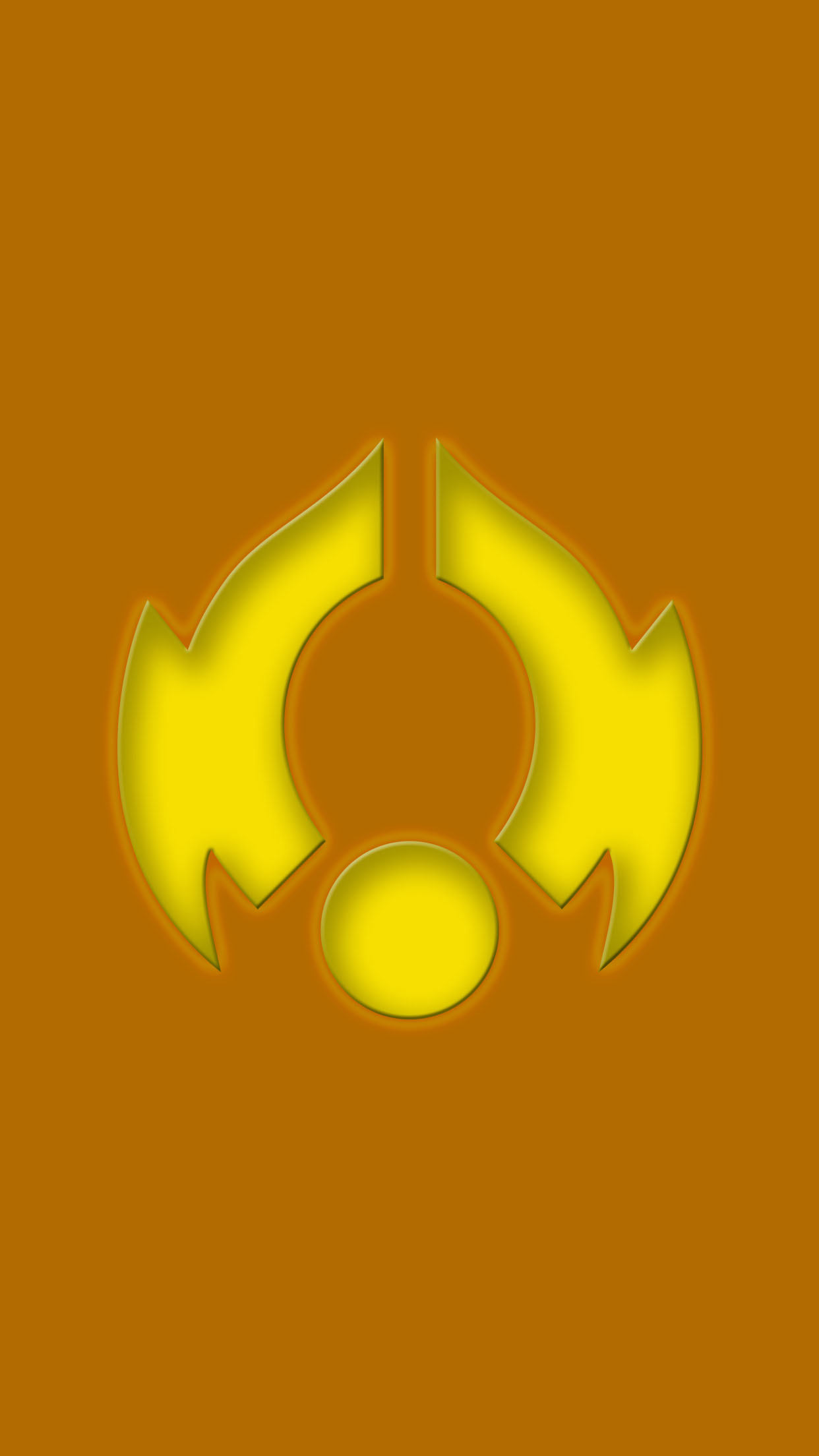 Description: A yellow circle with arrows on a brown background with a black background and a yellow circle with a black center.