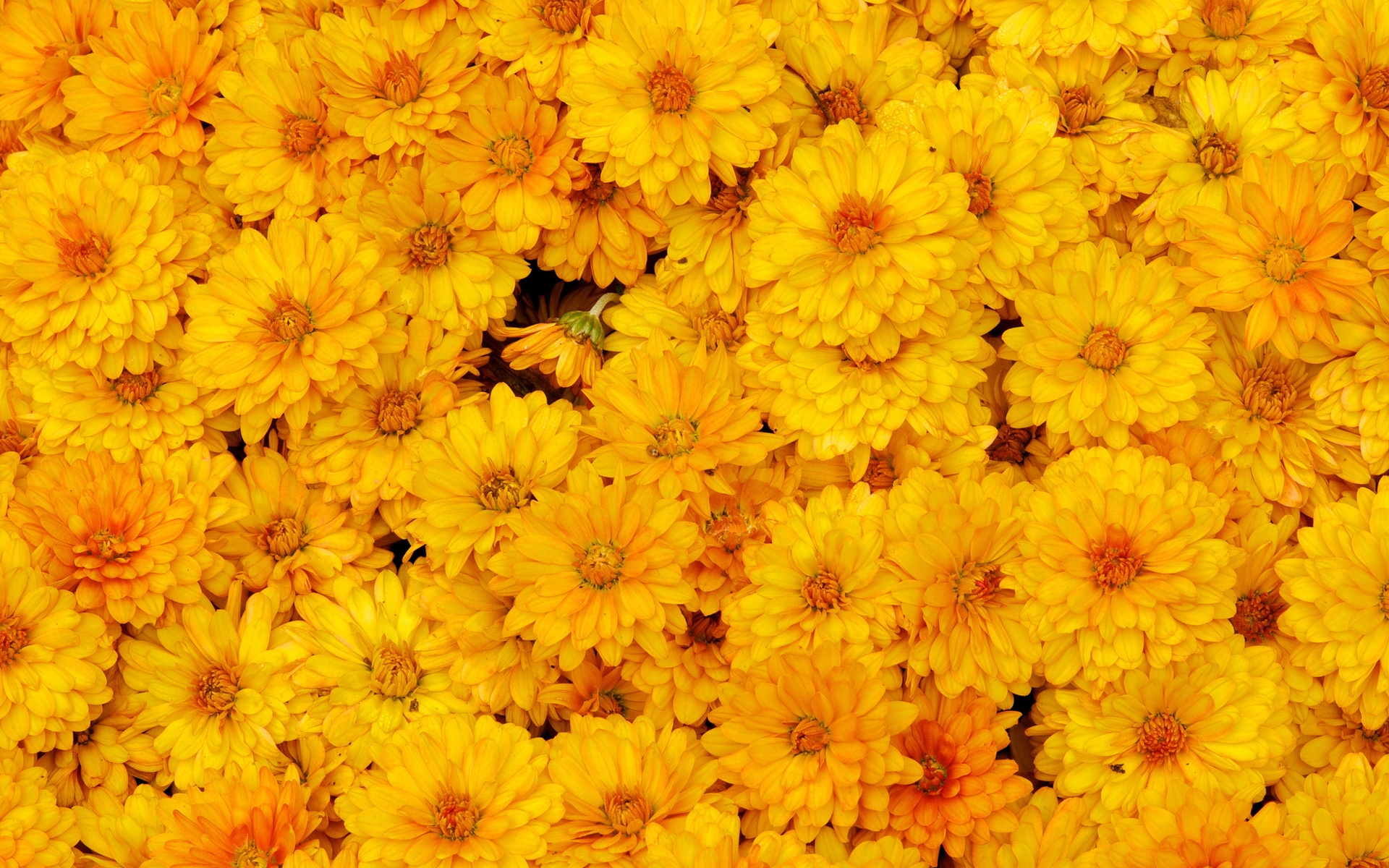 Description: A bunch of yellow flowers with a bee on them in the middle of them.