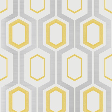 Description: A yellow and gray hexagonal pattern on a white background with a gray background and yellow hexagonals.