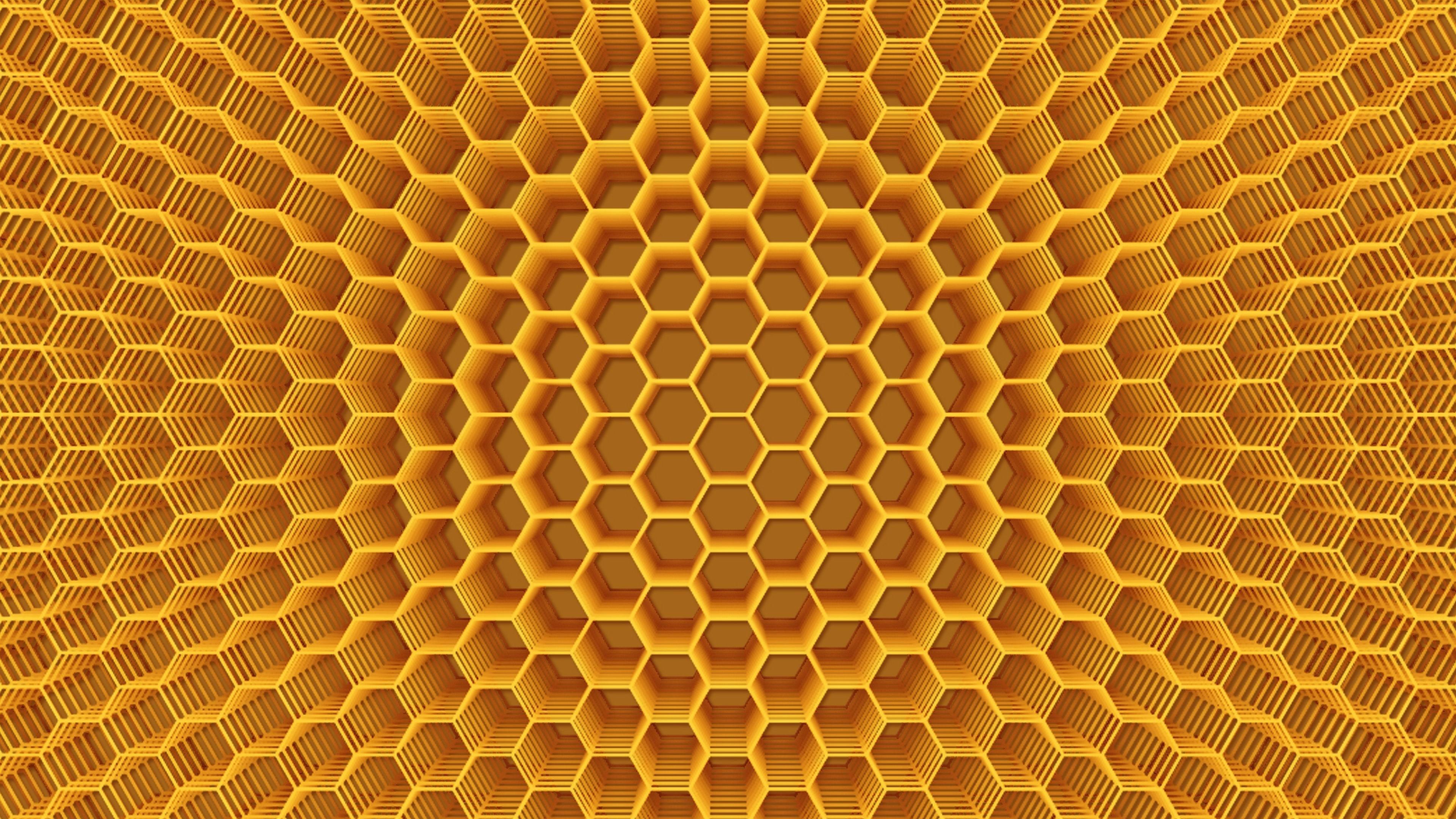 Description: A yellow background with a hexagonal pattern in the middle of it.