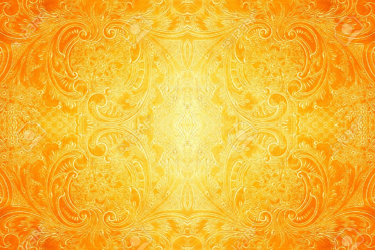 Description: A yellow and orange background with a pattern of swirls and leaves on it stock photo - 1387992.