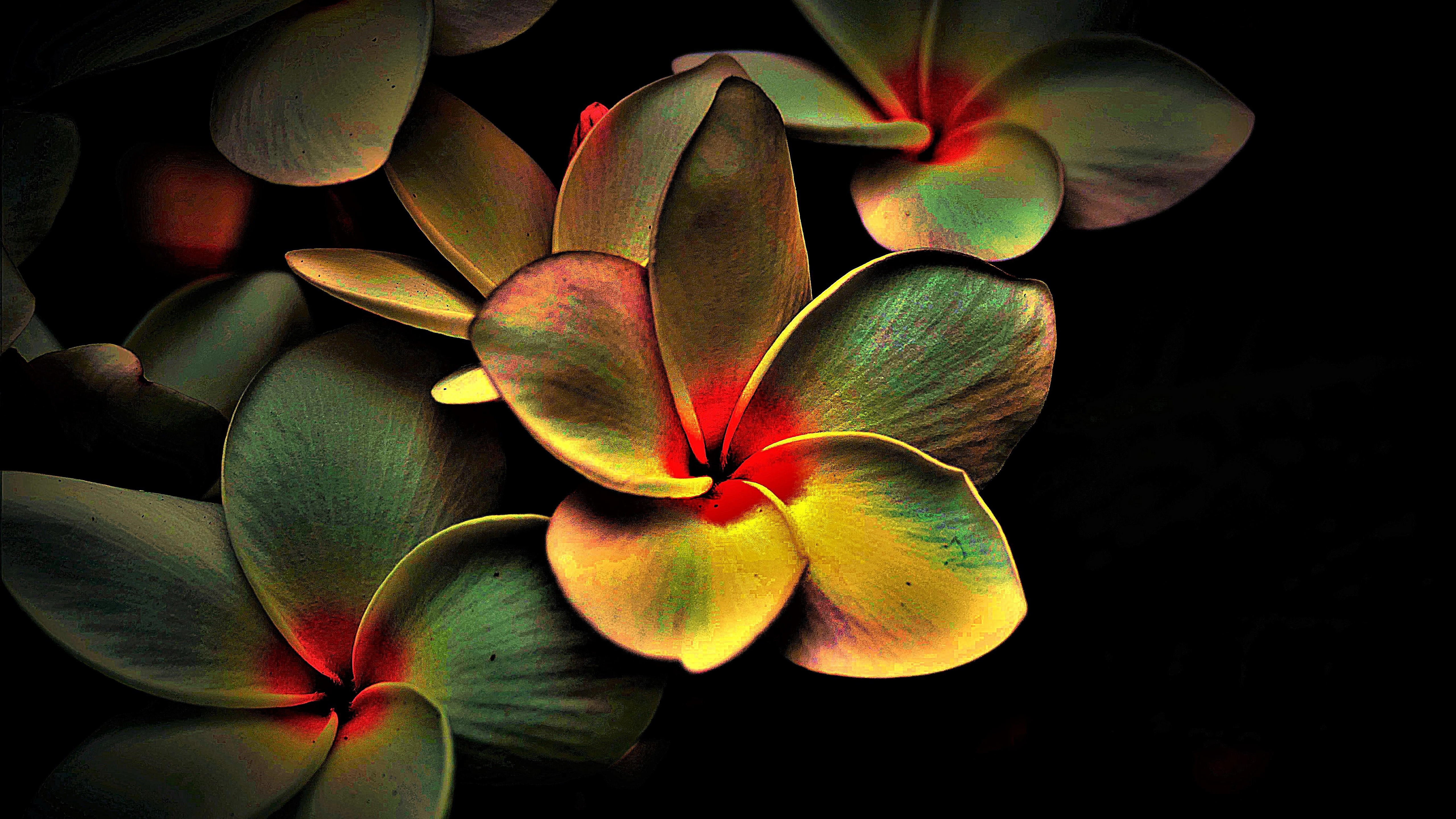 Description: A group of flowers with yellow and red petals on them.