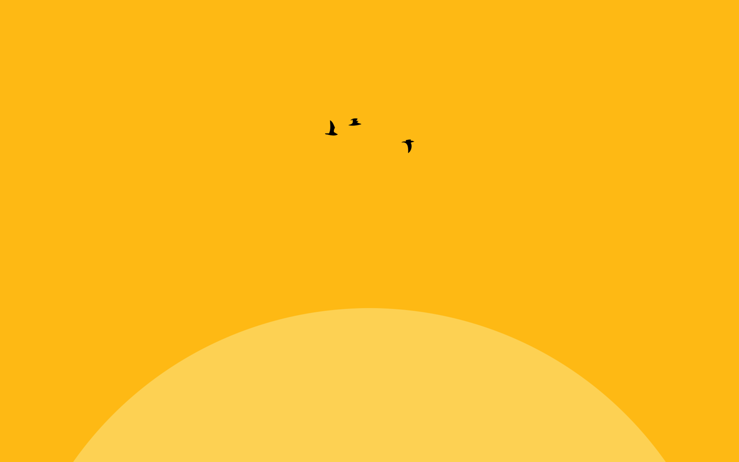 Description: A flock of birds flying over a yellow sky at sunset or sunrise or sunset time.